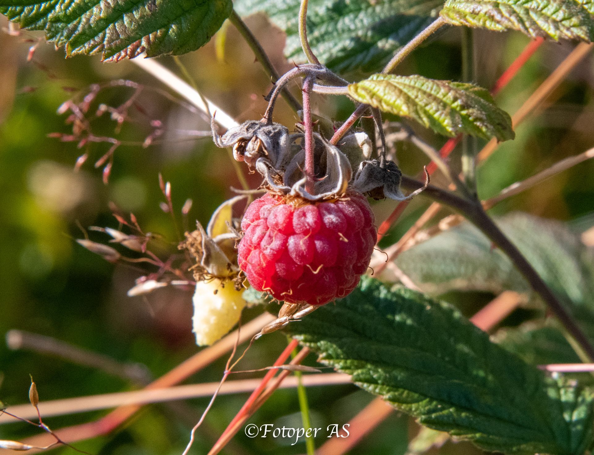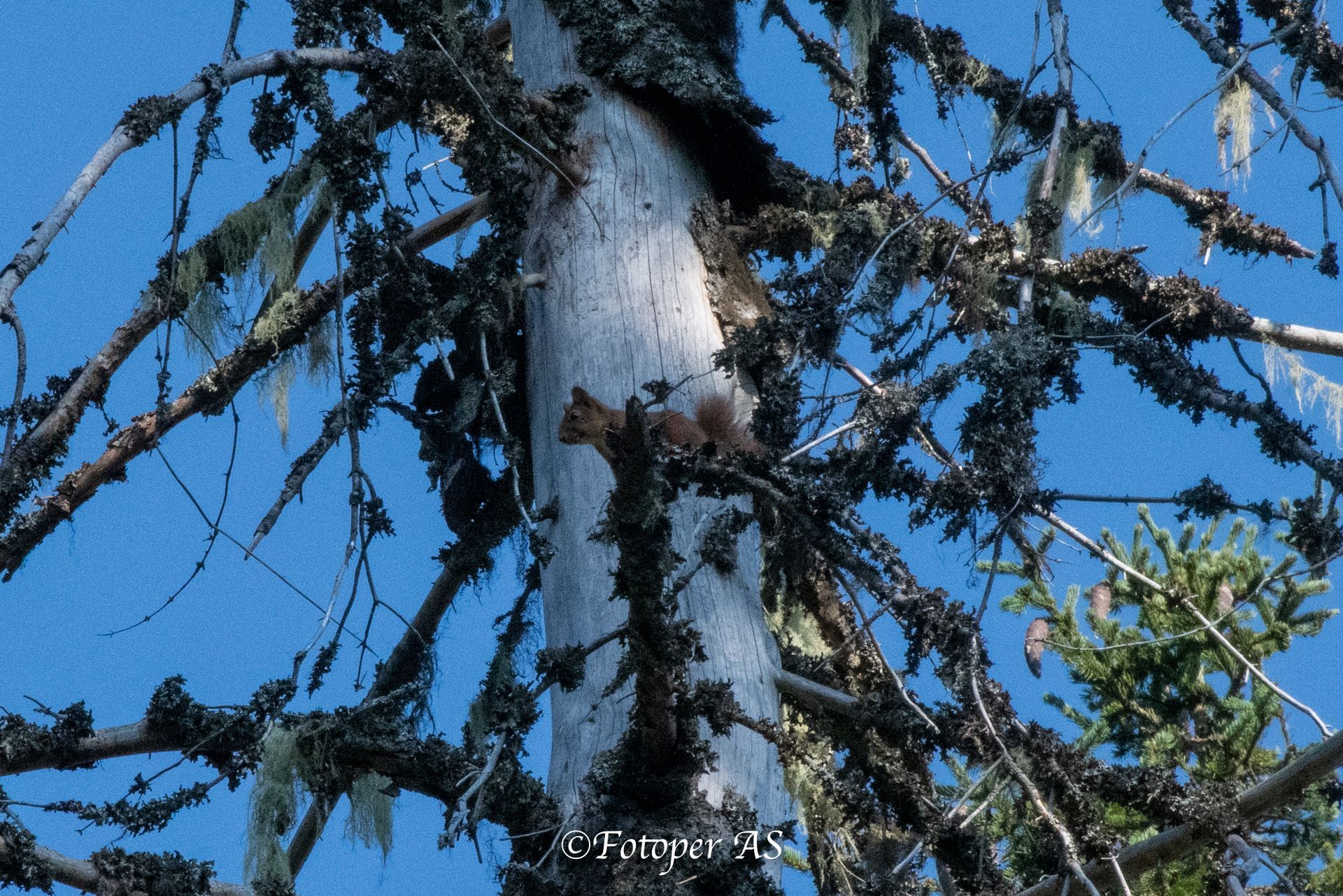 På stille stier jeg går og finner både blåbær og bringebær. Et ekorn spretter rundt oppe i ei tørrgran.