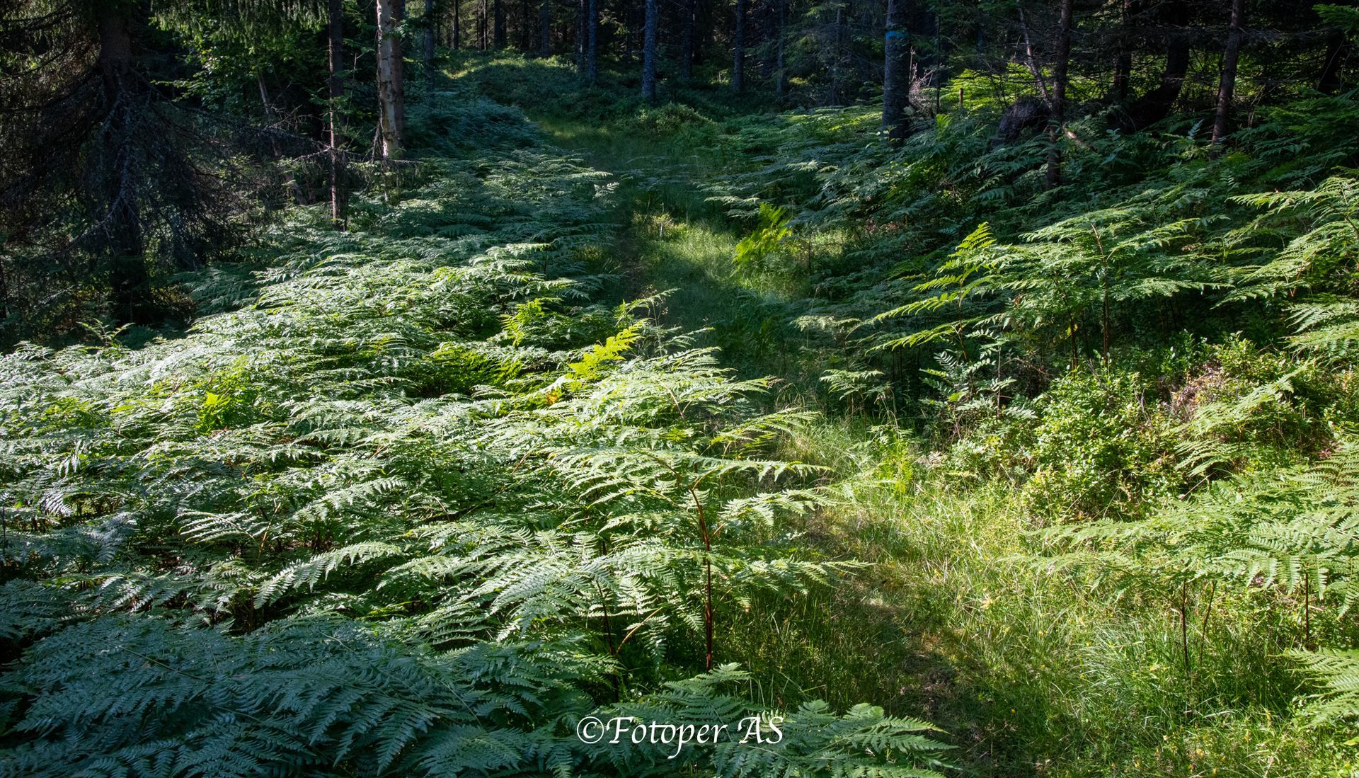 Stien snor seg videre mellom trærne mot Kneikaseter.