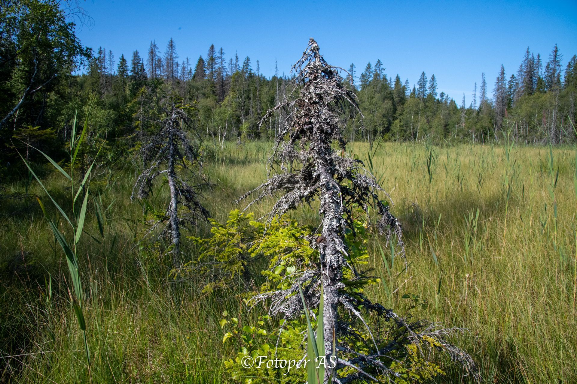 Klokka er ni og jeg er klar for avgang. Sola varmer godt allerede, så det går ikke lang tid før genseren henges på sekken. Er litt mygg når jeg stopper for å fotografere, men det går greit. En og annen klegg prøver seg, men heldigvis ikke nok til å plage meg særlig. Er litt finere farger nå før sola kommer for høyt på himmelen, og jeg finner mange motiver.