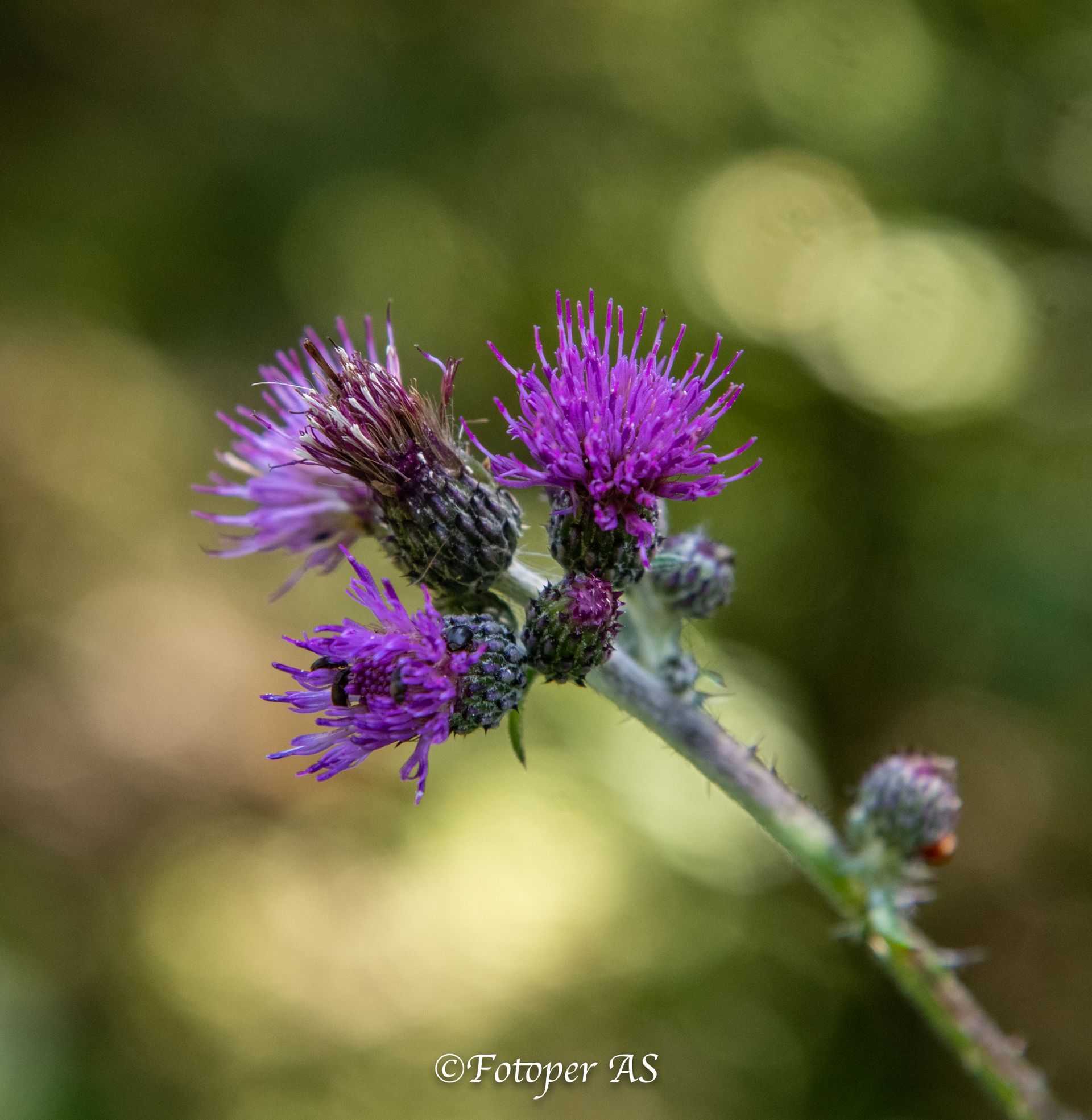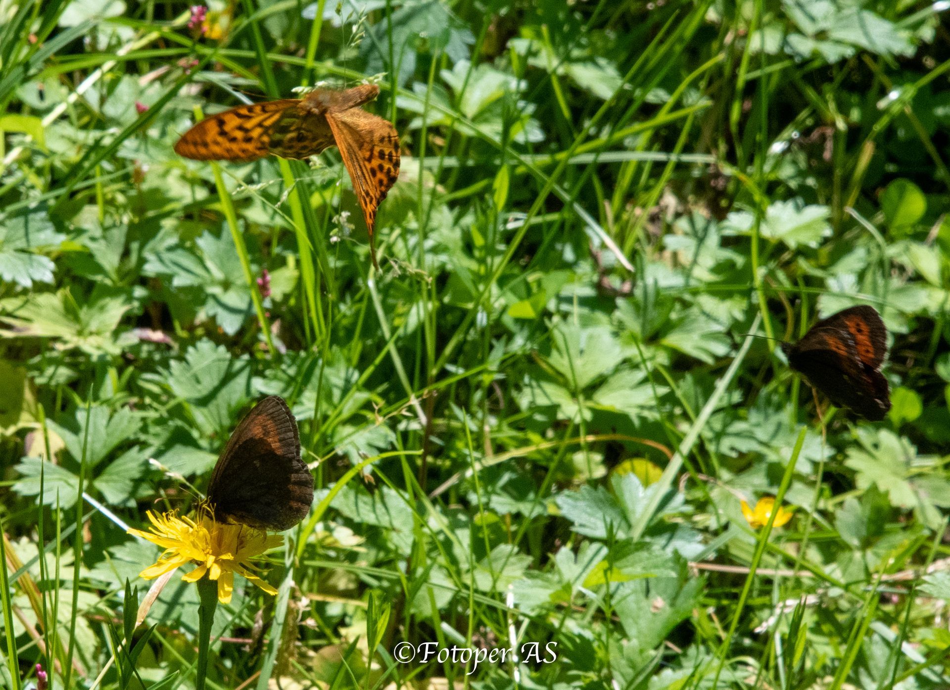 Møter en som kommer på sykkel inne i skogen, kanskje det blir en sykkeltur på meg neste gang. Men ikke om Kneikaseter og Toresplassen, der er det altfor bløtt og klundrete å komme fram. Mange fine blomster langs veien, og det kryr av sommerfugler.