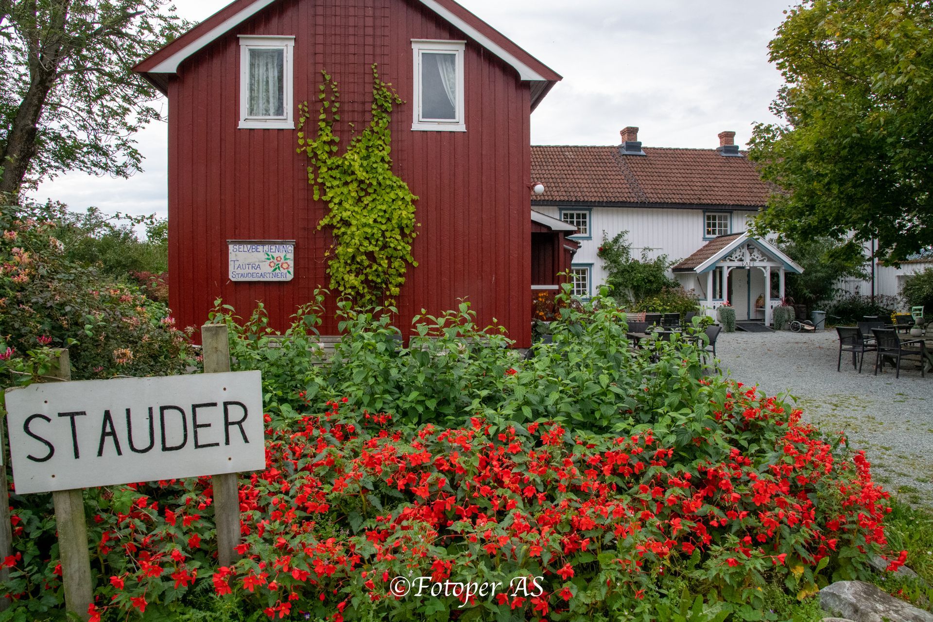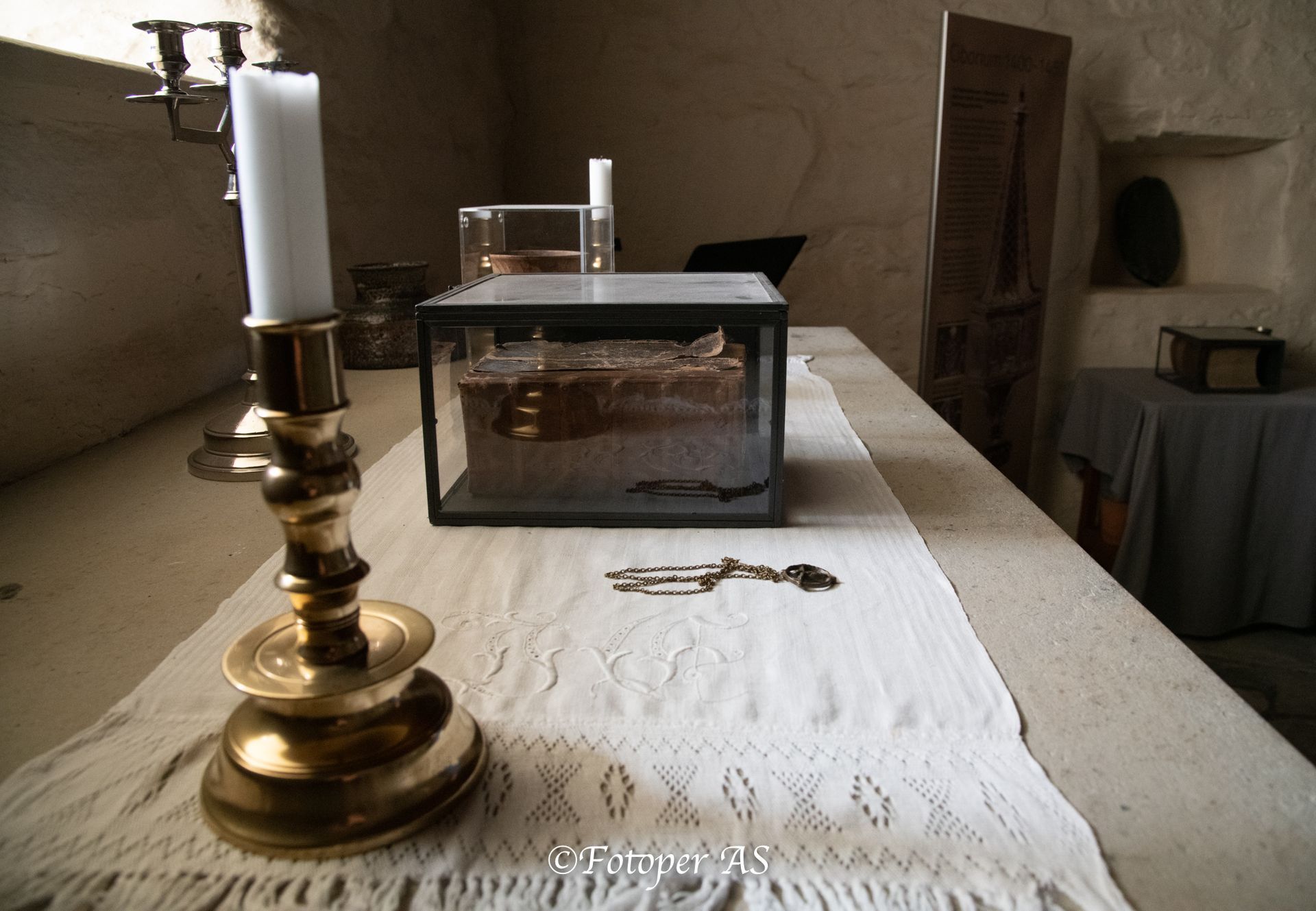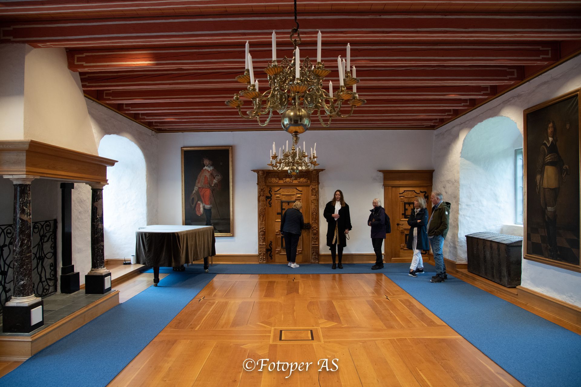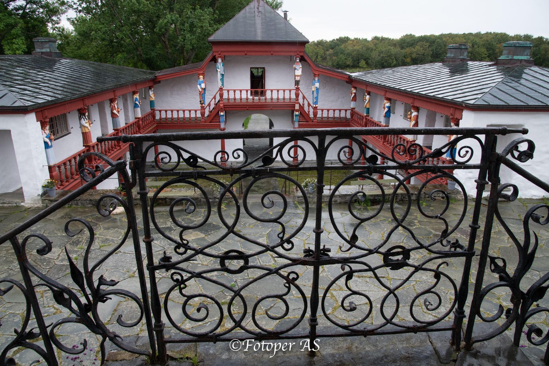 Vårt første besøk på land er Austråttborgen, hvor vi har avtalt omvisning. Så kommer hun, guiden, i stilig tidsriktig antrekk, og ønsker oss velkommen. Og hun har med et nøkkelknippe med solide nøkler hun skal bruke. Vi starter ute i duskregnet, før vi går inn i borggården og får vite enda mer om stedet. Austrått er en herregård fra 1000-tallet, og har vært bosted for flere personer i norsk historie. Familien Bjelke er blant de eierne som har markert seg mest. Men også Inger Ottesdatter (Inger til Austrått) er et kjent navn knyttet til borgen. I 1916 brant det meste av borgen ned etter et lynnedslag. Men det ble bestemt at den skulle bygges opp igjen, og i 1961 var restaureringen ferdig. Staten eier i dag borgen med Nordenfjeldske Kunstindustrimuseum i Trondheim som forvaltningsorgan. Kirken brukes til gudstjenester og andre kirkelige handlinger i sommerhalvåret. Takk for meget bra guiding, vi lærte mye interessant.