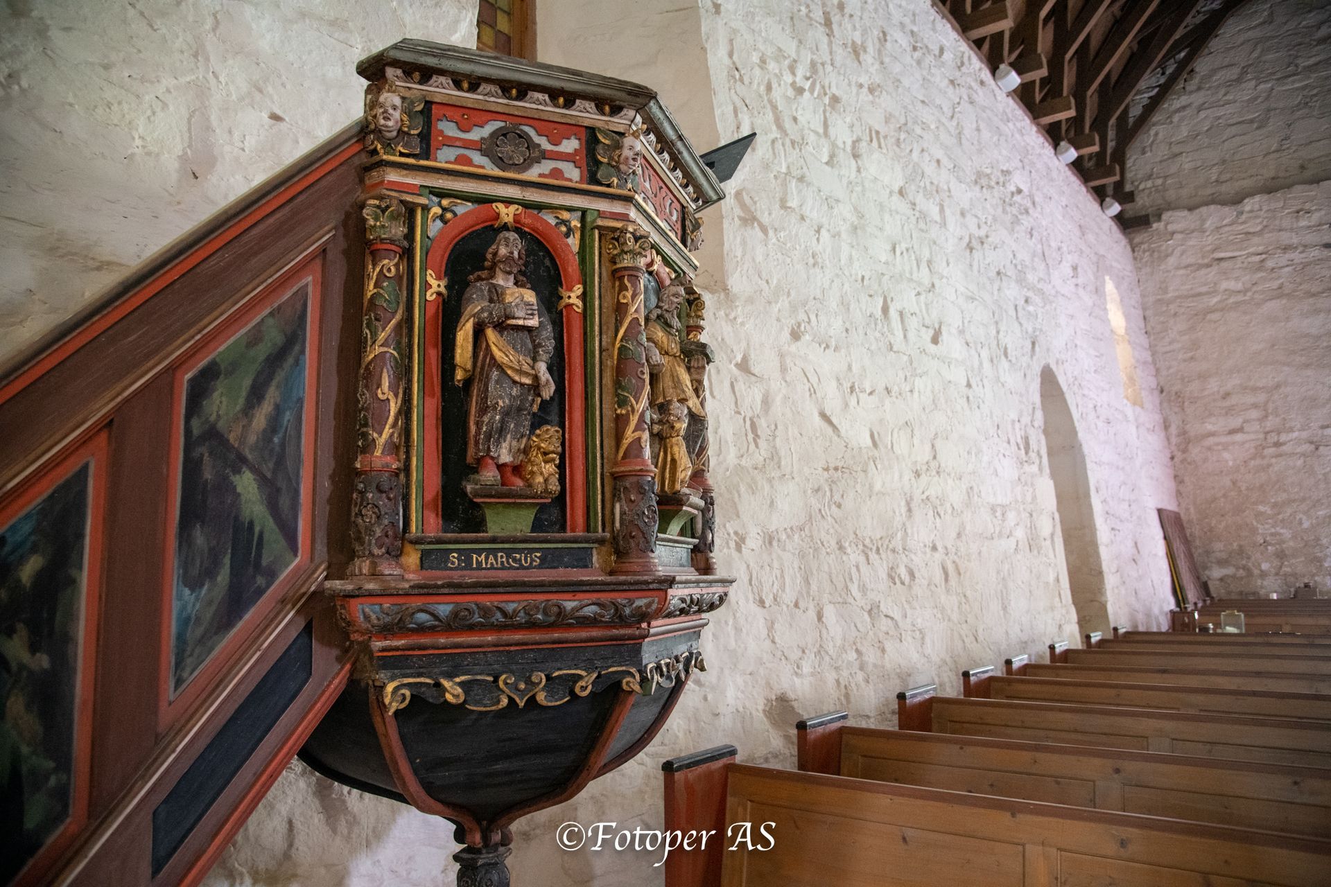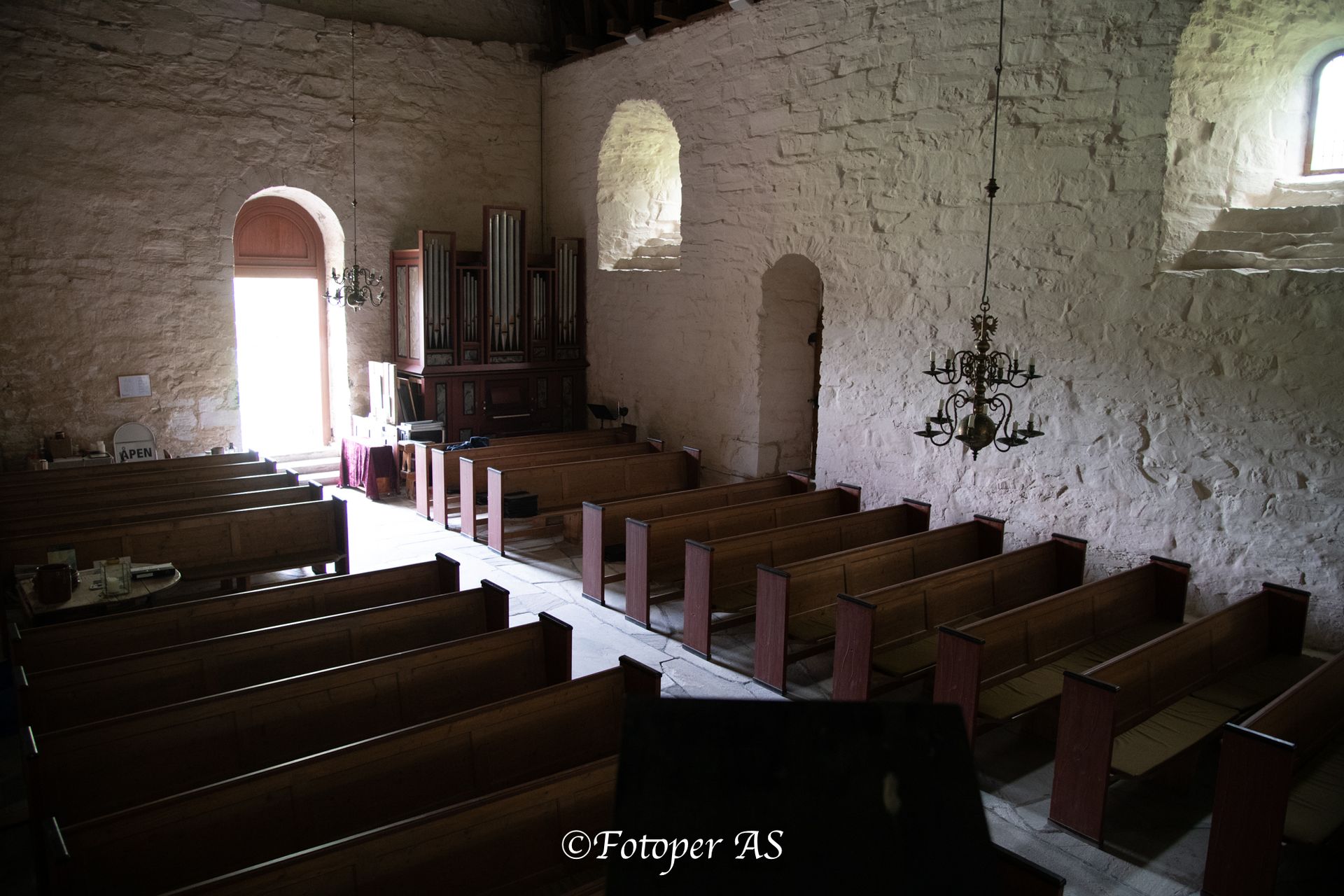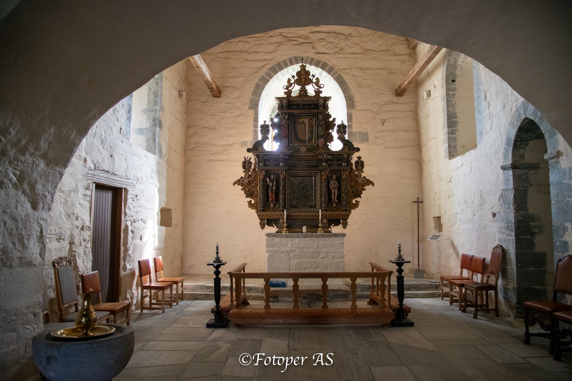 Da den nye kirka ble innviet, startet et forfall av den gamle. I 1873 ble interiør og treverk fjernet, og kirka ble stående som en ruin med bare murverket igjen. Ruinen ble samme år gitt i gave til Fortidsminneforeningen, og etter restaurering ble den vigslet og innviet på nytt i 1958. Under en stein på alteret ligger en kopi av nøkkelen til kirka. Vår guide fortalte at han i sine unge år gikk på toppen av den høye muren rundt kirka som da var uten tak. Noe hans mor forøvrig ikke fikk vite om.