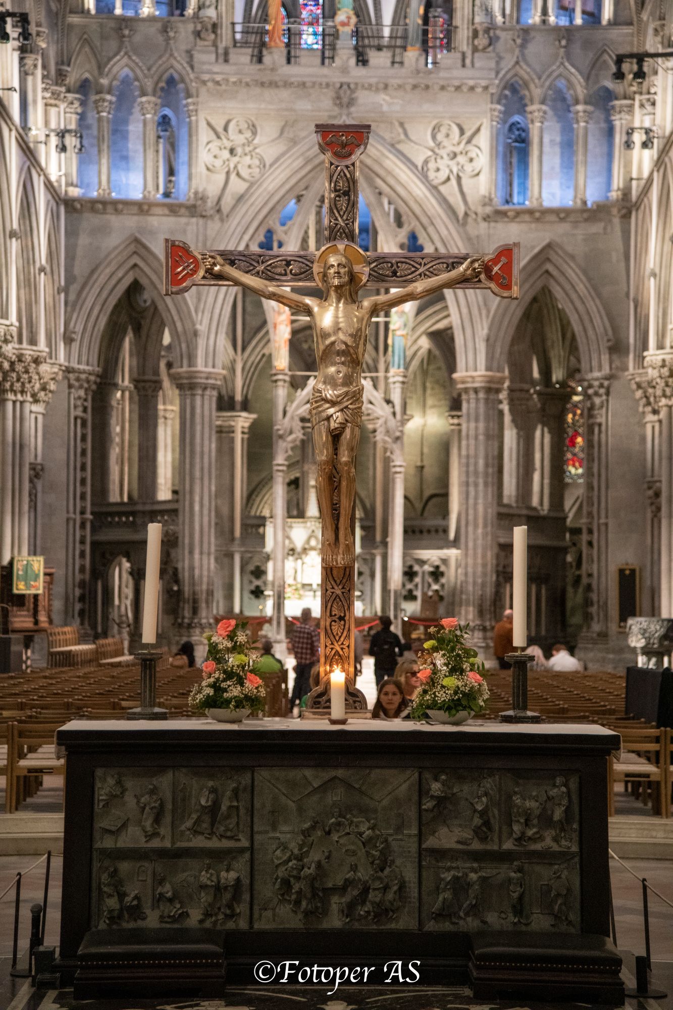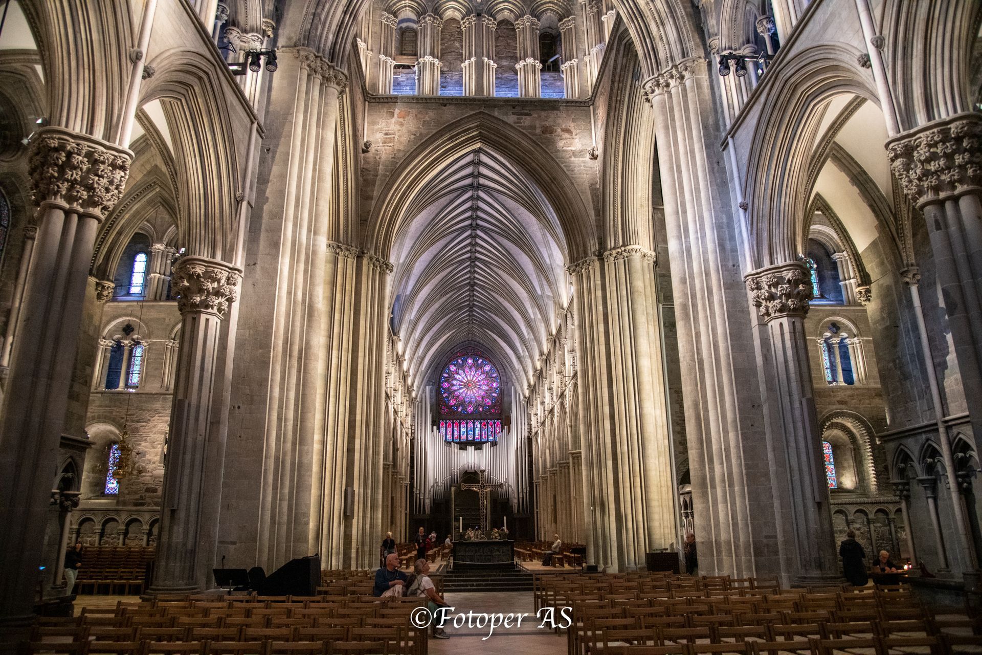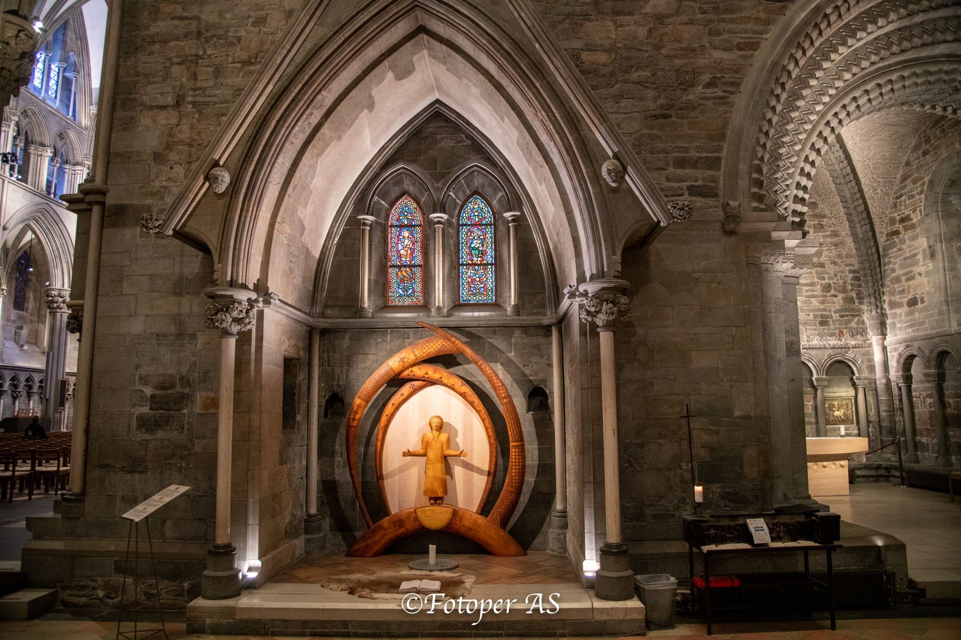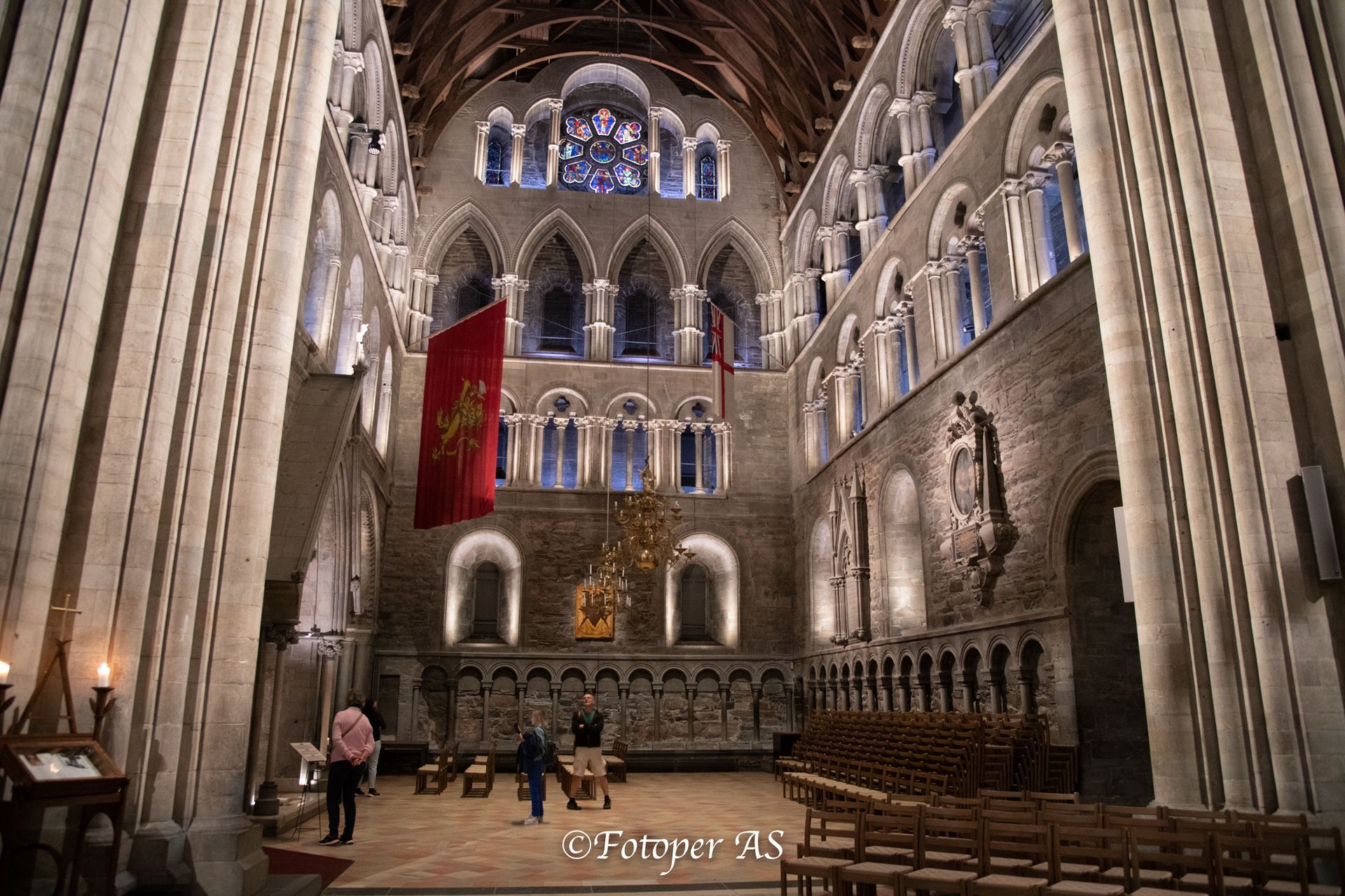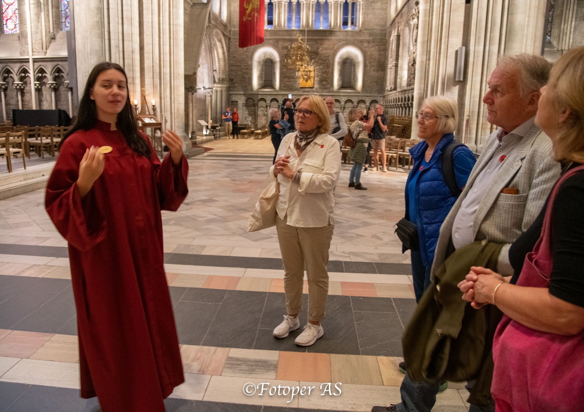 Etter frokost disponerer vi tida selv fram til vi skal ha guiding i Nidarosdomen. Jeg har vært der en gang før, da var det ei mørk kirke å komme inn i. Nå har den flott belysning, som også er prisbelønnet. Vår unge guide er dyktig, og det anbefales å få en guidet tur hvis du skal dit. I kirka er det et orgel bygd i 1738-1739 og satt opp i 1741. Det er fire slike orgler i verden, det eneste som kan spilles på er det i Nidarosdomen, og det brukes til konserter hvert år. Folk kommer fra hele verden for å se det, og kanskje få høre det også.