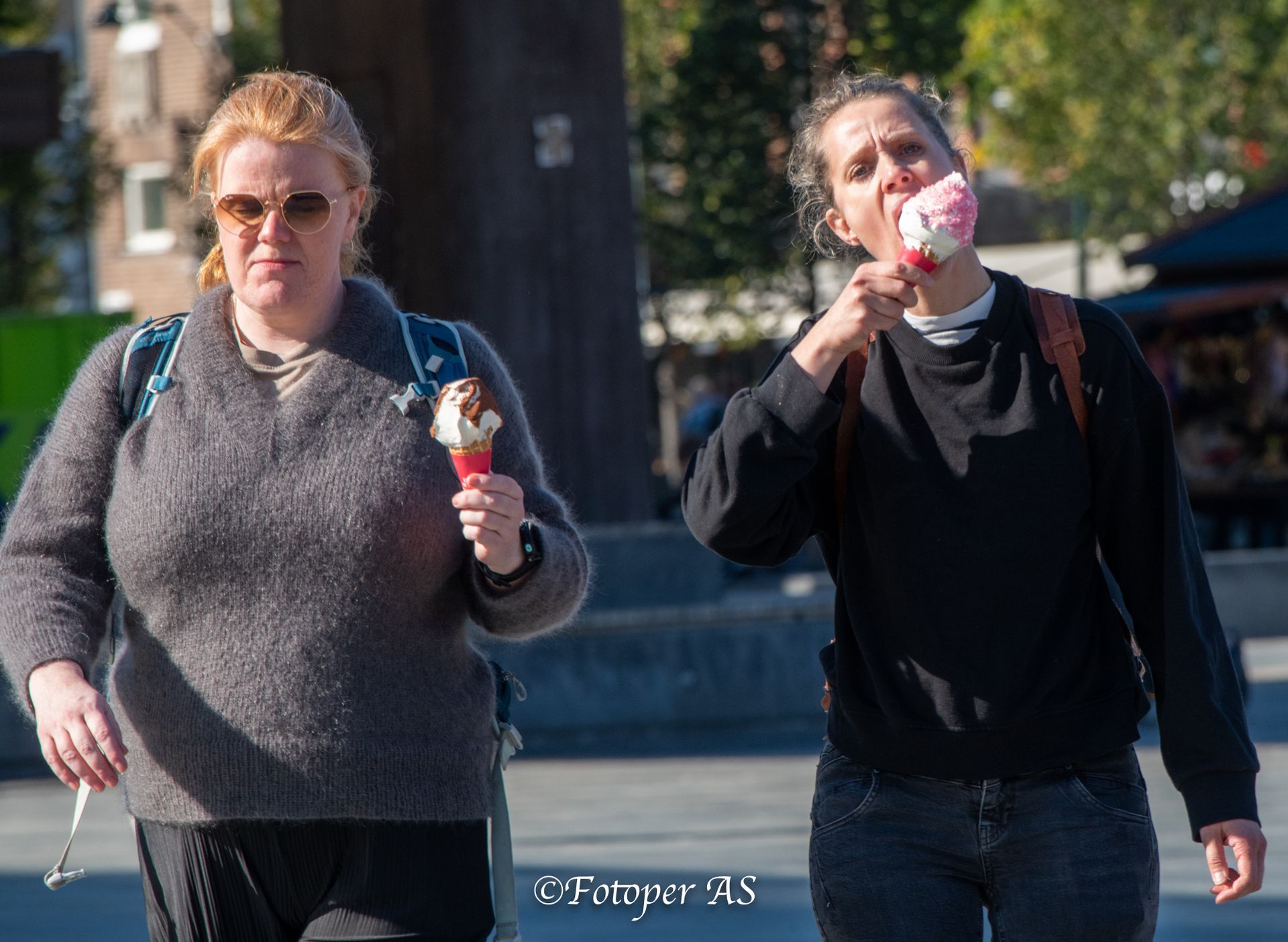 Været er strålende i Trondheim nå. Etter omvisningen har vi igjen «fri» og gjør hva vi ønsker. Noen besøker gallerier og annet, noen er tørste. Jeg rusler rundt og ser etter fotomotiver, og blir også tørst. En øl smaker godt i varmen.