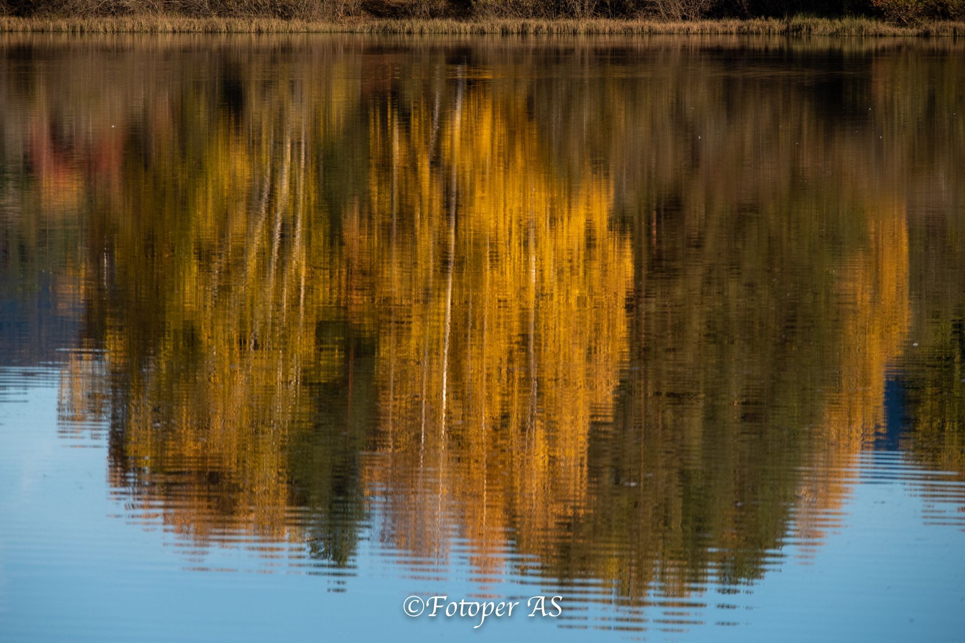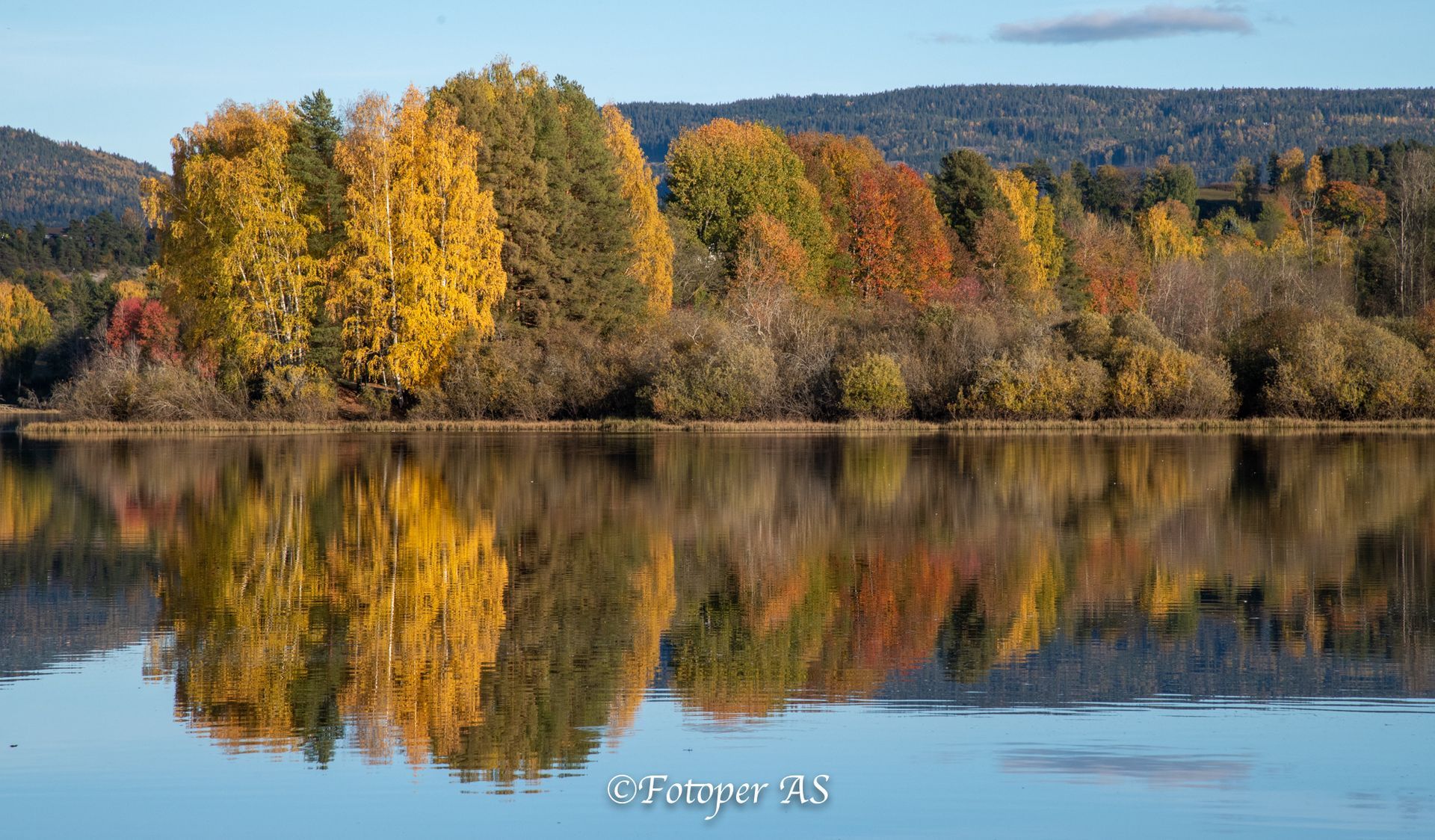 I høstferieuka har det stort sett vært sol og fint - etter at tåke har lettet. Bildene du ser her er fra to dager denne uka. Den første turen startet ved Juveren, denne kroksjøen som er så vakkert innrammet i høstfarger.