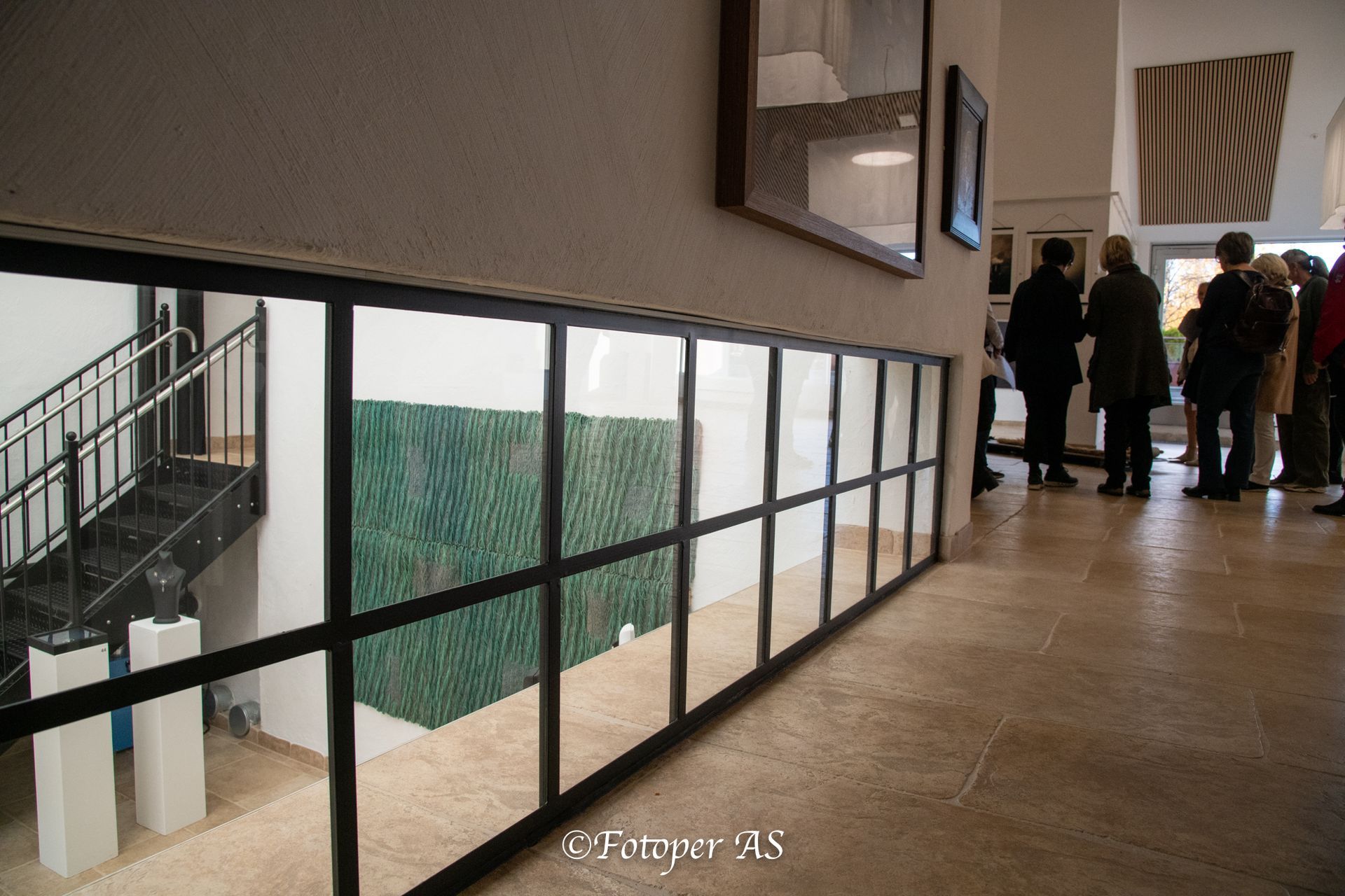 I deler av disse flotte lokalene har Ringkunsterne sin utstilling. Hønefoss Kamera Klubb (HØKK) hadde i mange år sine møter her da bygningen var eid av kommunen. Tronrud Eiendom overtok bygningen og har pusset den opp vakkert utvendig og innvendig. Jeg hadde problemer med å skjønne hvor lokalene HØKK brukte var. Bli med en runde i galleriet. Et besøk kan anbefales. Vi var en gruppe og hadde Eva Haglund som guide. Takk til Eva for meget interessant omvisning og tolkning av kunst.