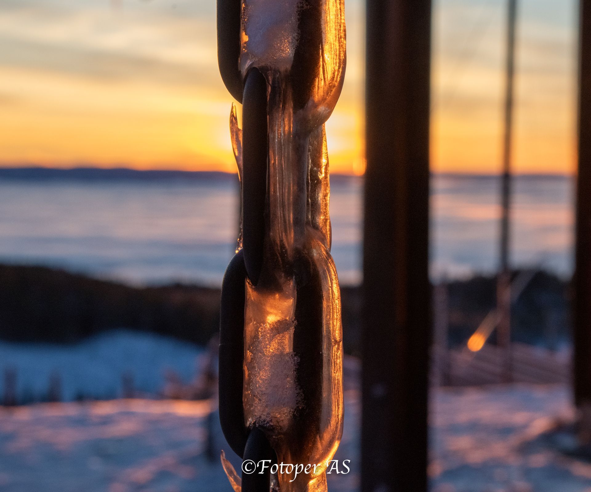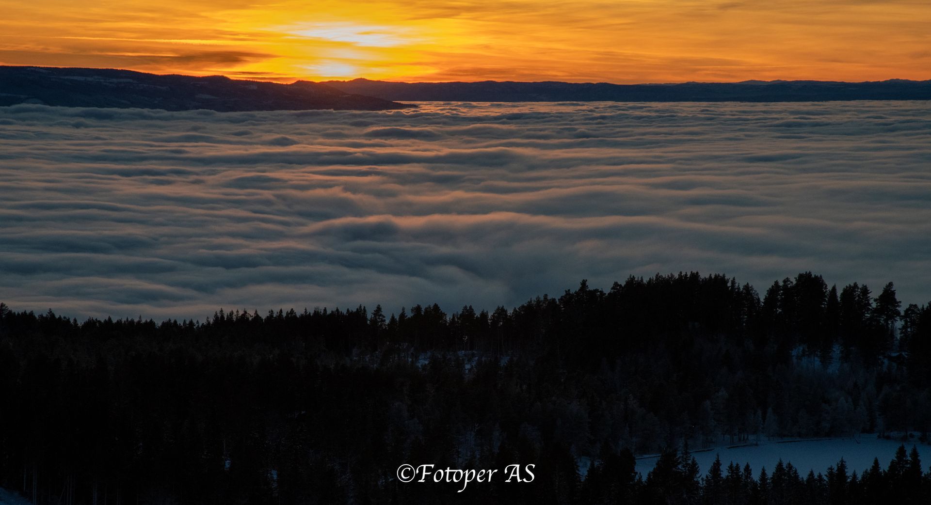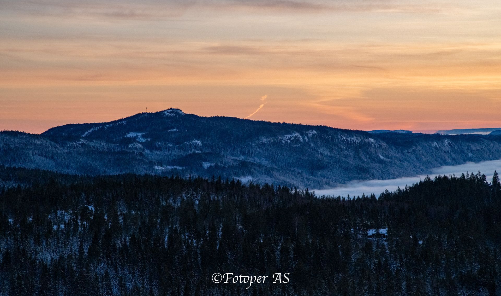 Ser at det nærmer solnedgang og tenker at jeg må komme meg til Ringkollstua for å få den med derfra. I alpinbakken har det blitt produsert snø og slangene ligger utover. Snøen her er steinhard og knudrete, ja det er mer is enn snø. Det er litt igjen før sola bikker over åskanten. Jeg stiller meg i le for litt sur vind og venter – og venter. Men jeg venter ikke forgjeves. Det blir en vakker solnedgang over tåka.