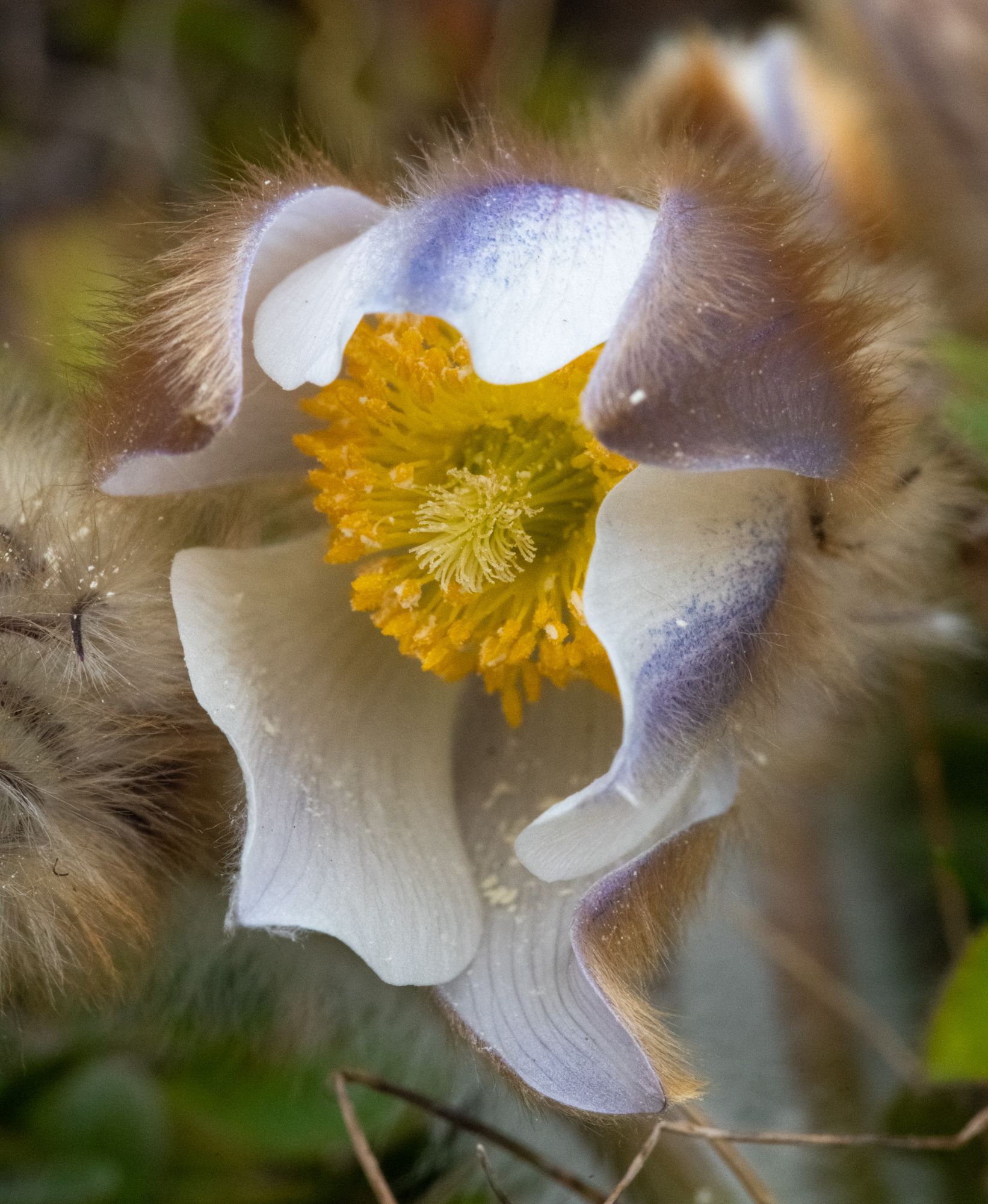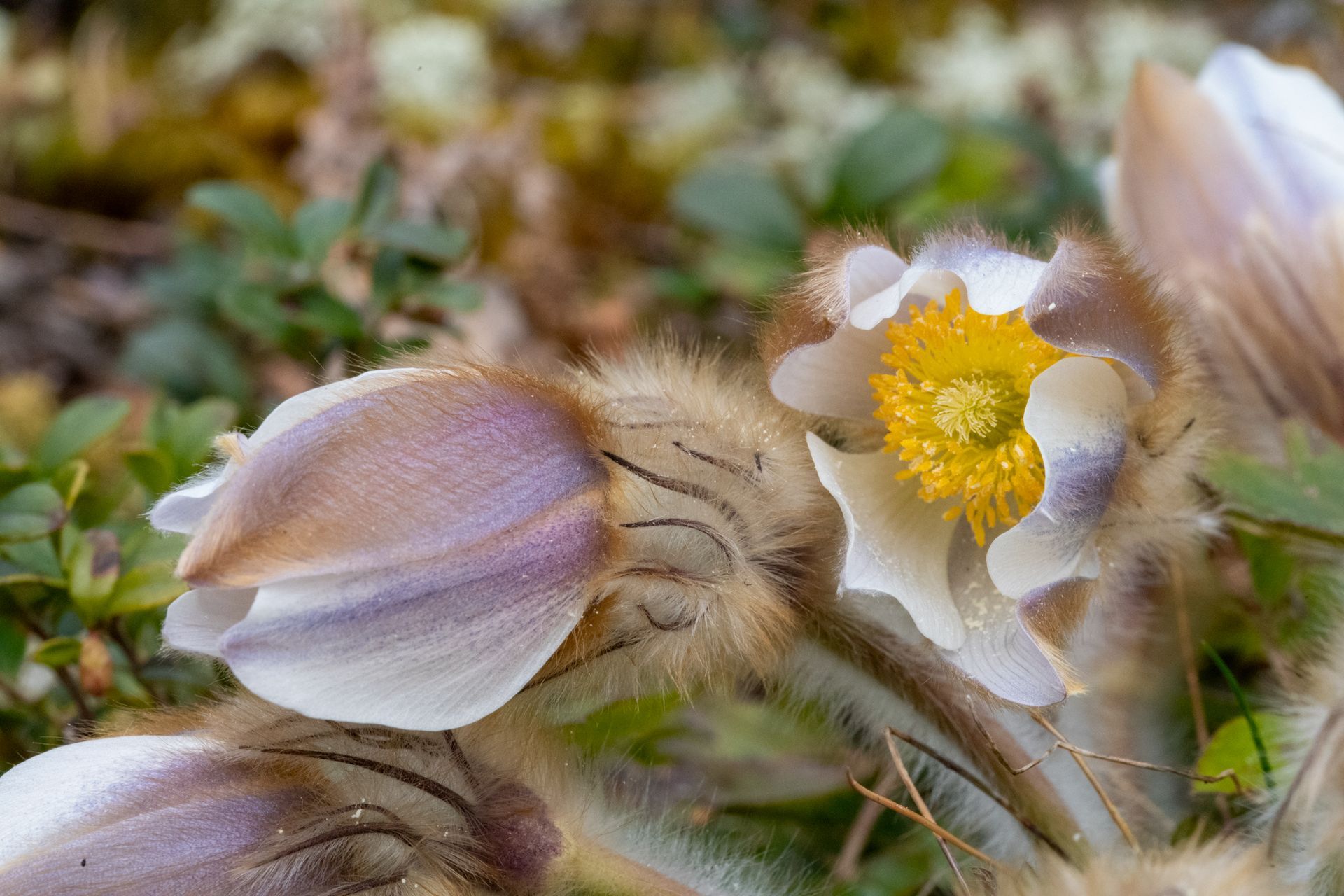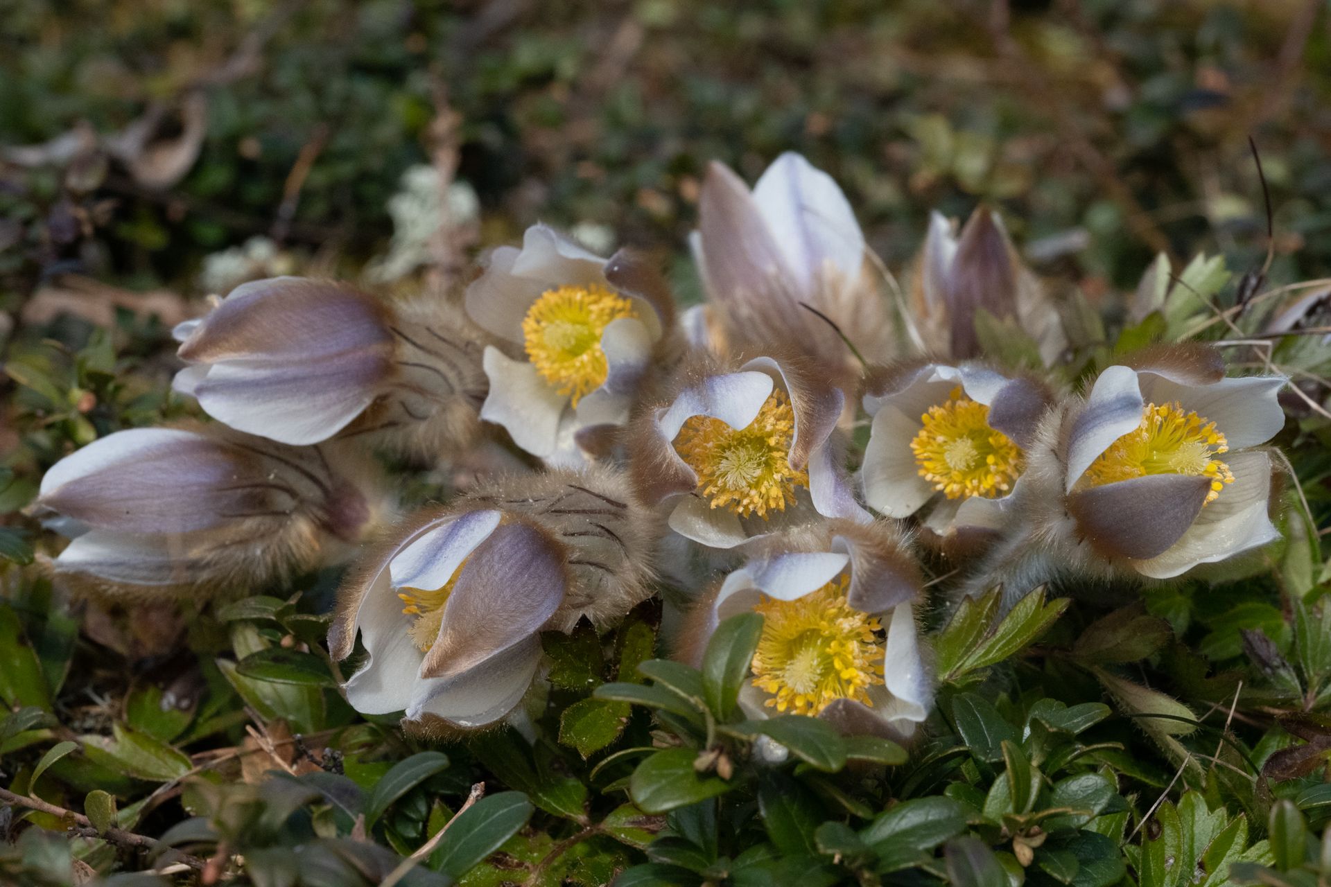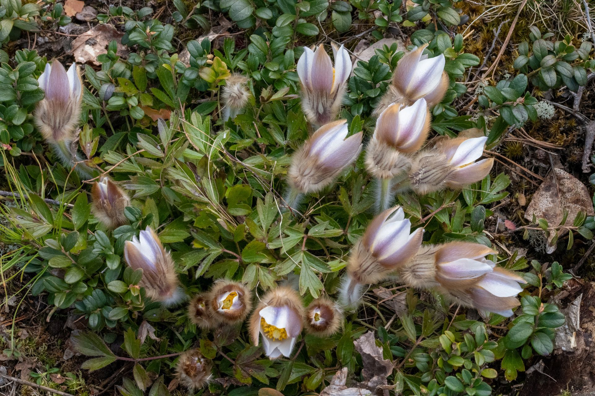 I fjor fikk jeg hjelp til å finne et sted på Eggemoen hvor den blomstret. Men da jeg sjekket der forleden så jeg ikke en eneste blomst. Jeg vet det er mogop i Hurumåsen, men ikke hvor. Så spurte jeg en bekjent, og han viste meg hvor den er. Om mogop, eller mofiffel som noen sier, står det på Wikipedia: Mogop er en omkring 10–20 cm høy flerårig plante i kubjelleslekta (Pulsatilla), som videre inngår i soleiefamilien (Ranunculaceae). Planten er i utgangspunktet giftig, men den har lenge blitt benyttet som legeurt, blant annet mot vorter, kaldsvette, migrene, utslett og mage-tarmbesvær, herunder også som brekkmiddel.