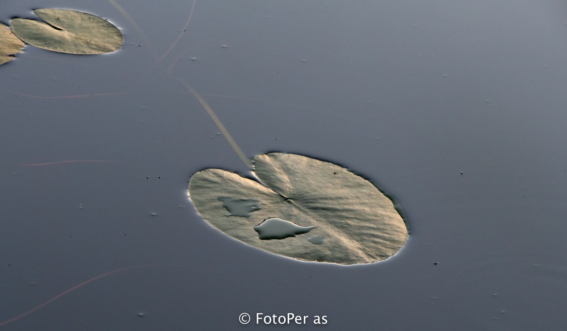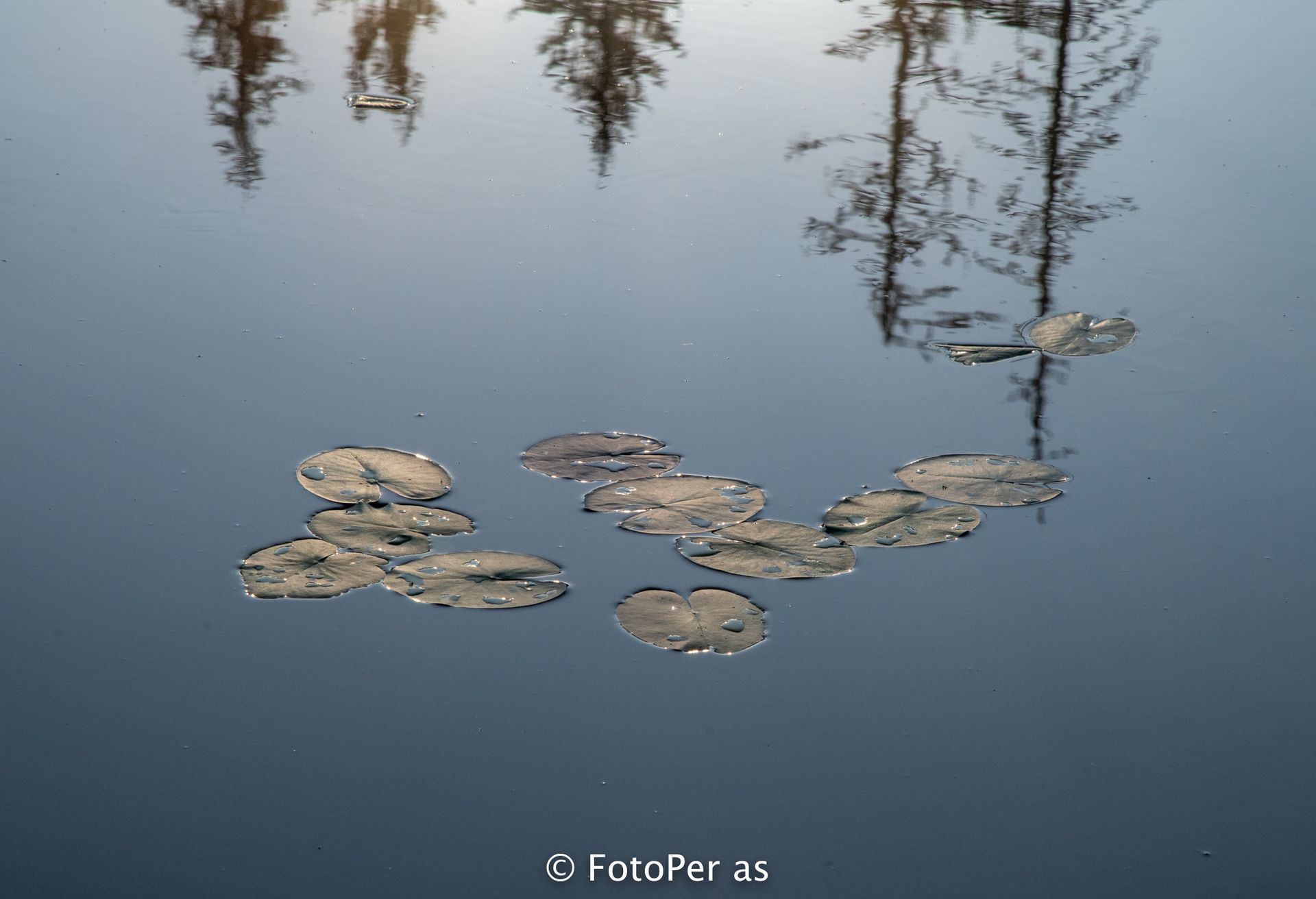 Det er masse vannliljeblader i tjernet, men det er få blomster å se. For tidlig på morran til at de har "våknet" enda.