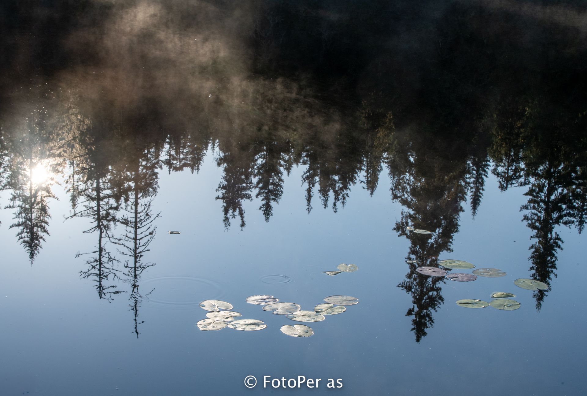 Tåka ligger over tjernet og det er en trolsk stemning.