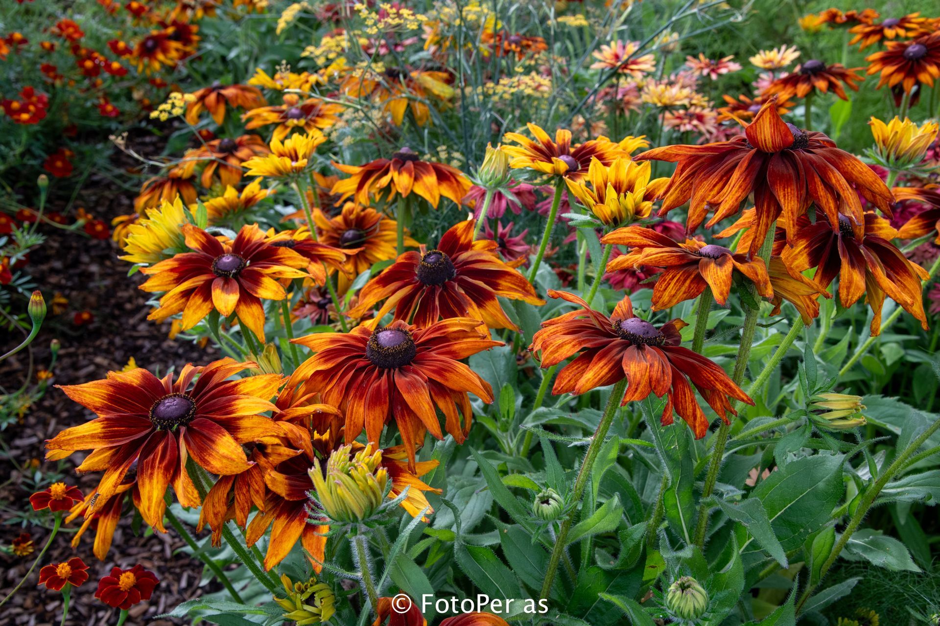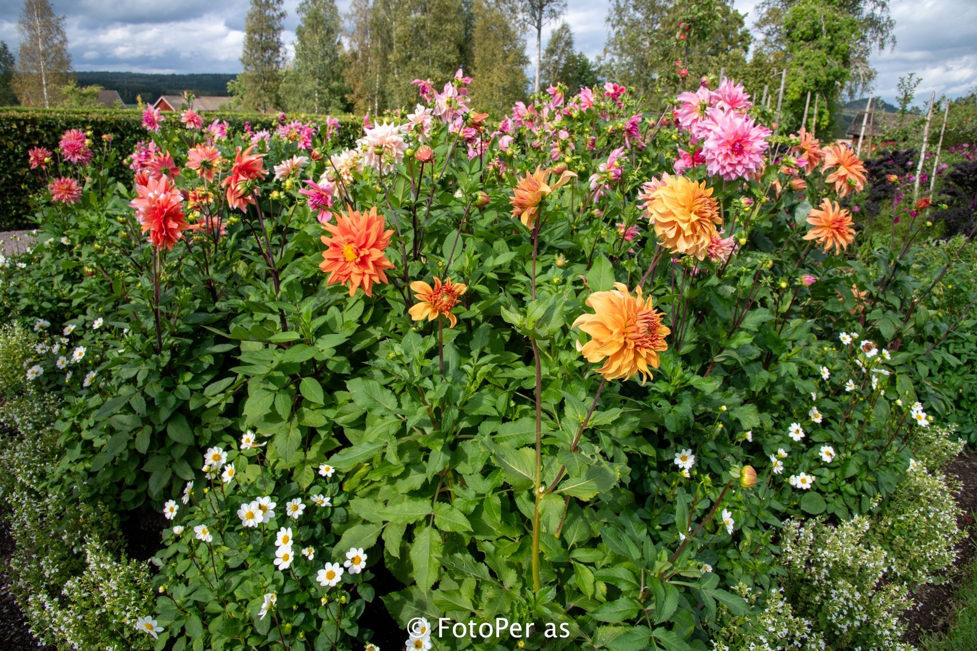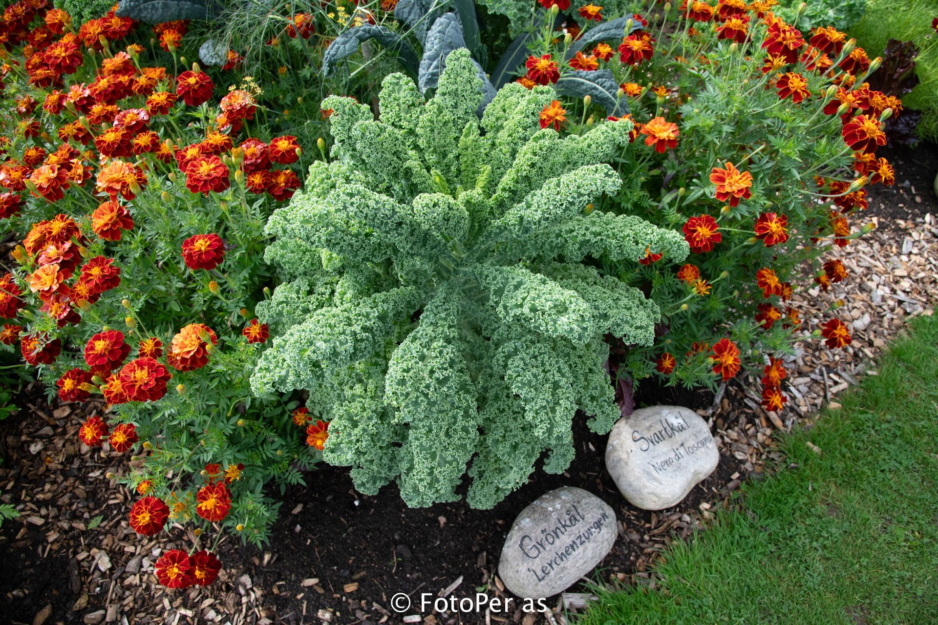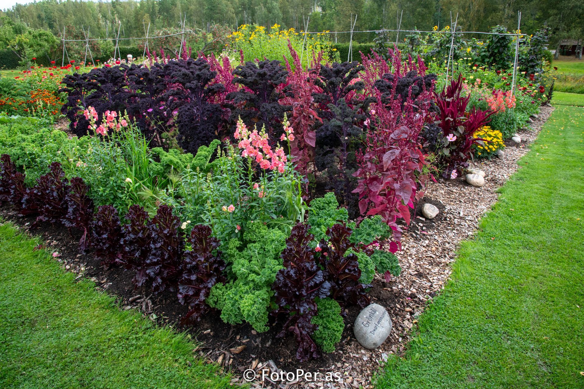 Det var mange blomster, urter og grønnsaker i den vakre hagen.