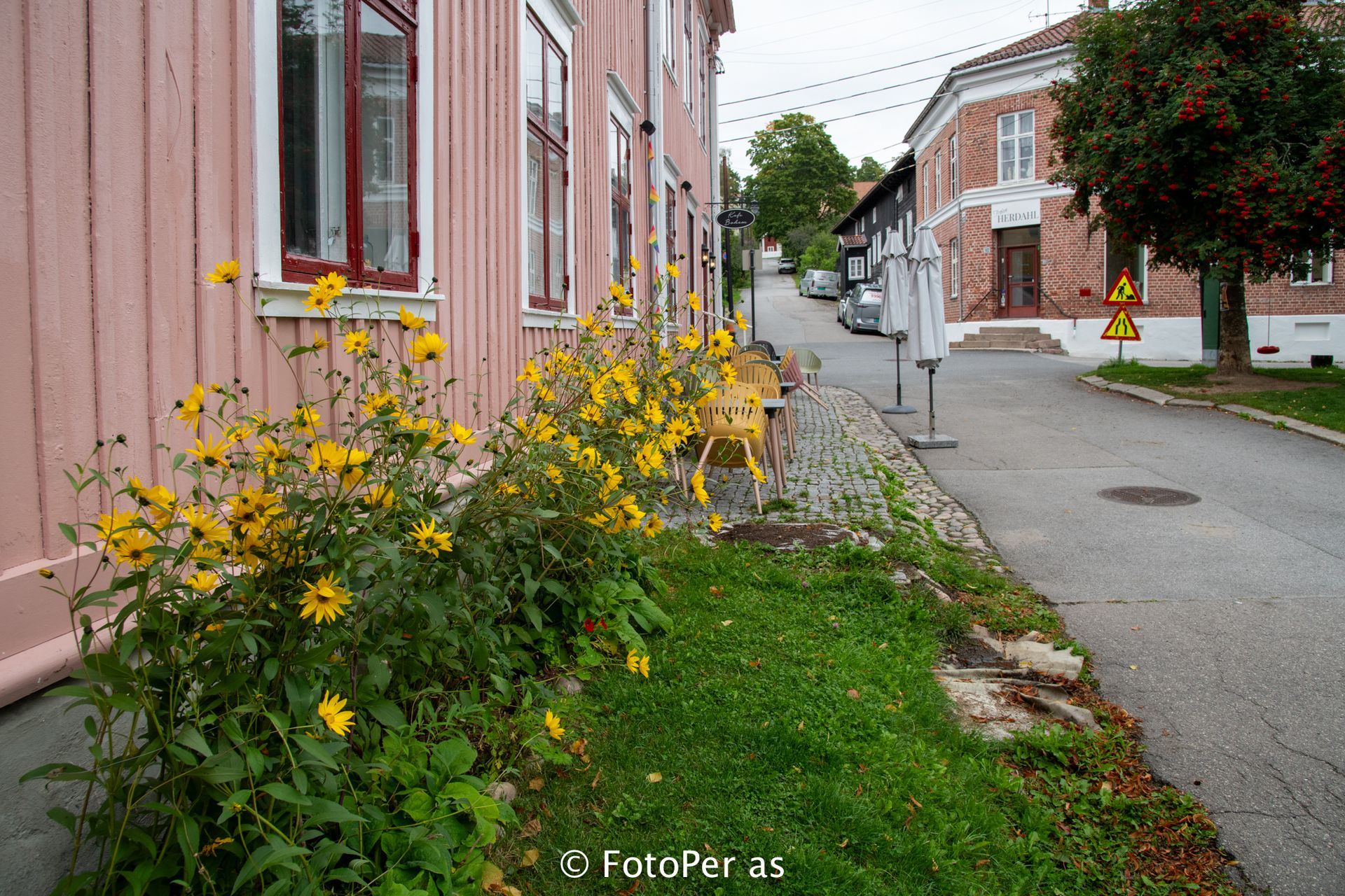Her var det ei ledig tomt blant de mange gamle husene. Hva hadde skjedd med en slik i Hønefoss? Tja, en utbygger hadde vel søkt om dispensasjon fra byggebestemmelsene og fått truga inn ei fem etasjer høyblokk i moderne stil.....