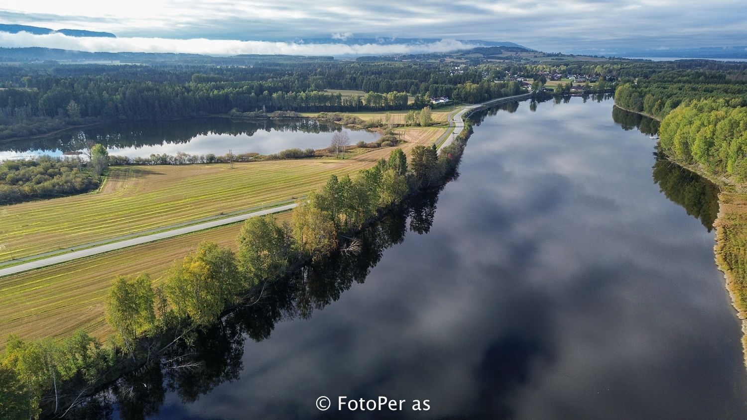 Søndag hadde jeg tenkt meg på Vikerfjell, men ifølge yr skulle det bli tåke. I stedet ble det en formiddagstur til Haug, Norderhov, Busund, Ask og til Tyristrand. Hadde med drona og tok noen bilder ved Busund. Beveren er ivrig i elveskråningen, og trærne den feller ligger på kryss og tvers.