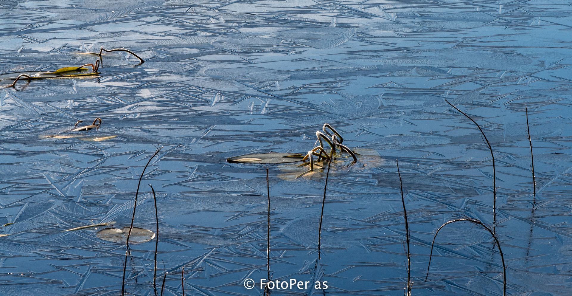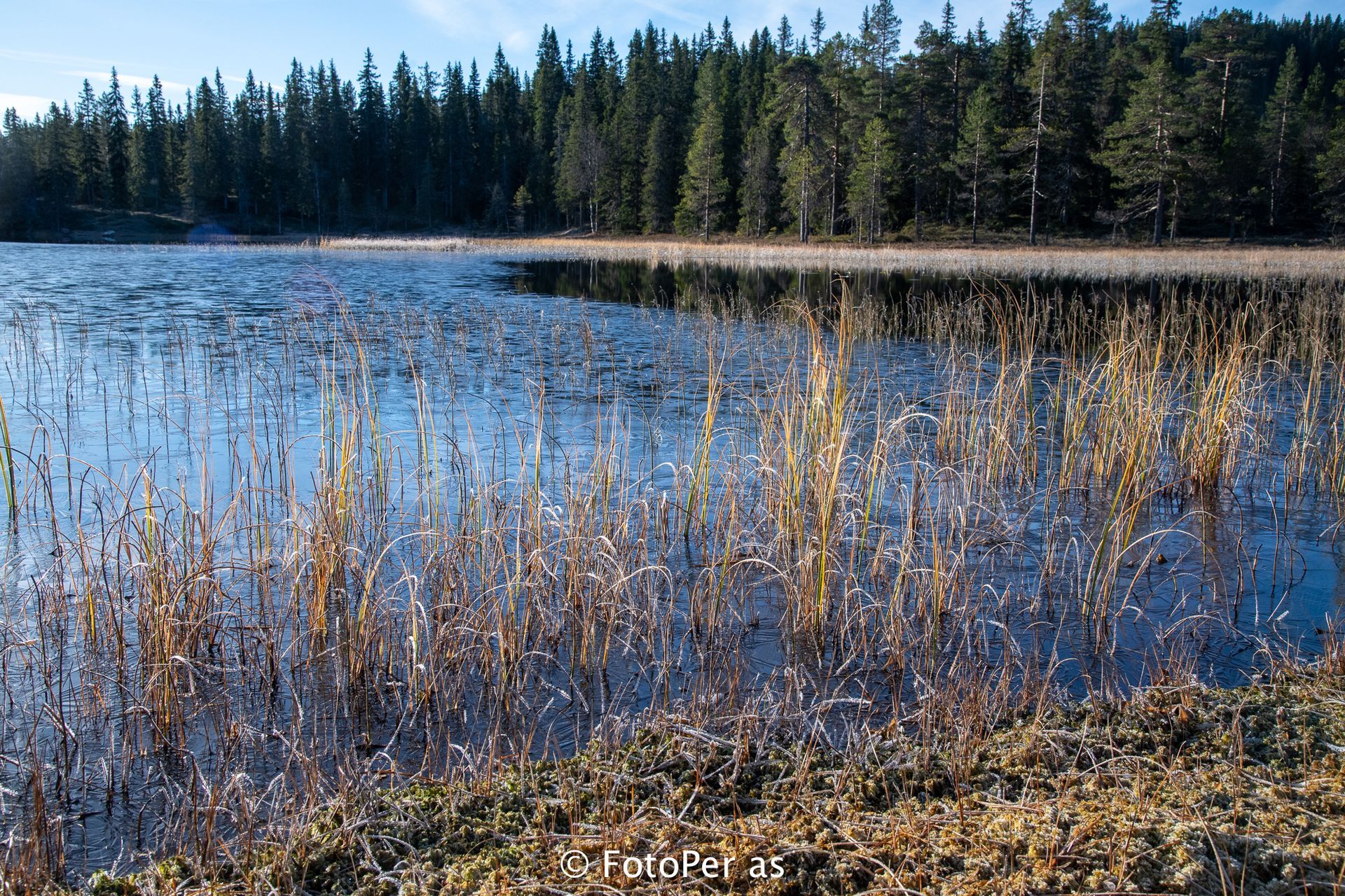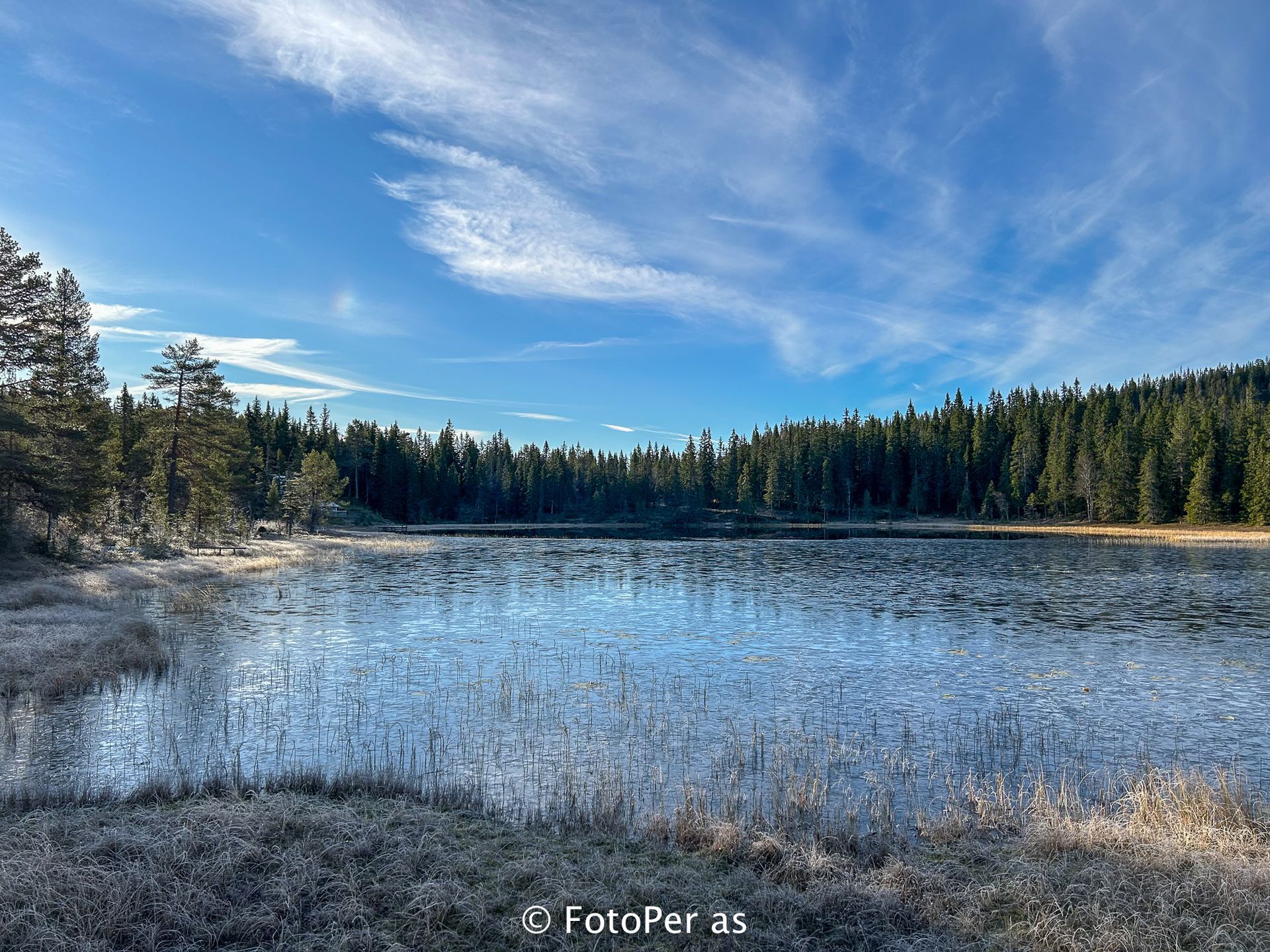 Mange vintre har jeg erfart at isen legger seg tidlig på Kolltjern. Slik er det i år også. Det er ikke is på hele tjernet, og selvsagt kan jeg ikke gå på den enda. Men det er fint å se på.