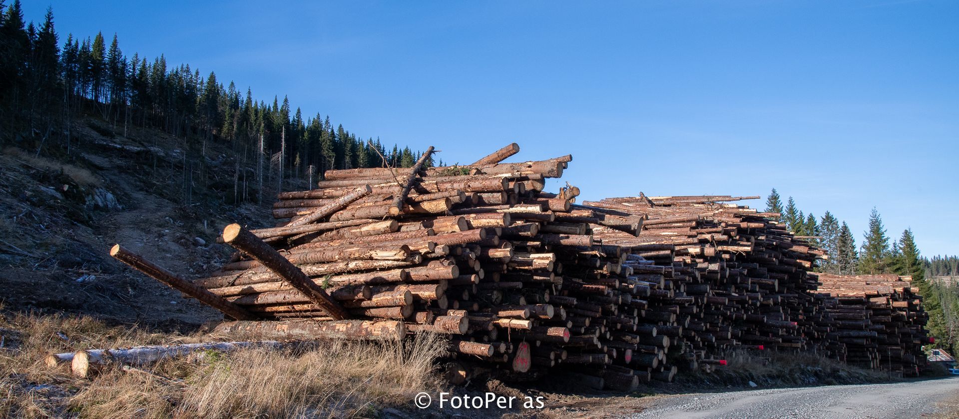 Øyangen blir neste stopp. Ingen is her enda, men blikkstille og høstvakkert er det. Langs veien til Ugla er det et stort hogstfelt, og svære og mange trær ligger i ei velte nær veien.