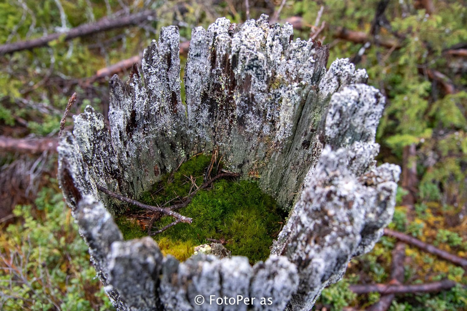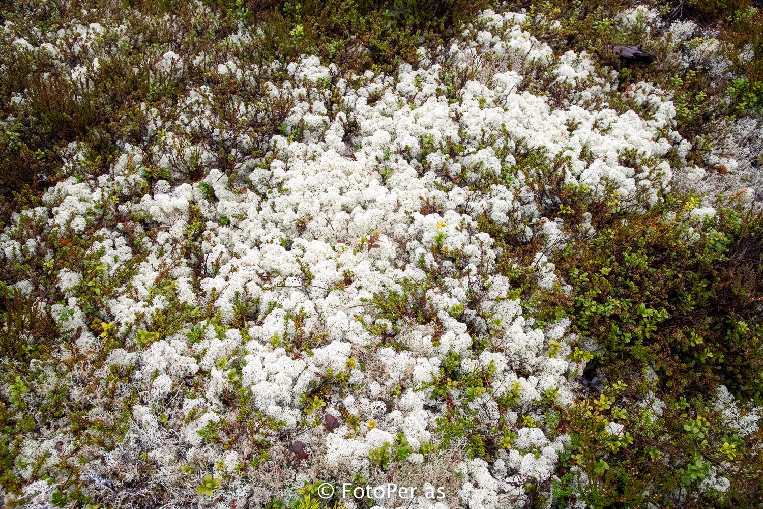 Det er mye fin mose her vi går. Er nok gode forhold for den. Fin å se på, men farlig å gå på. Må være særlig forsiktig med å gå på mosen nær kanter eller fjellskrenter, for plutselig løsner den og jeg kan gli utfor.