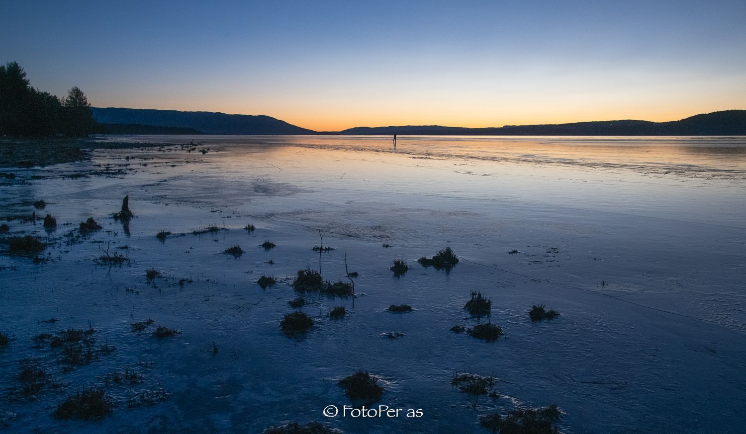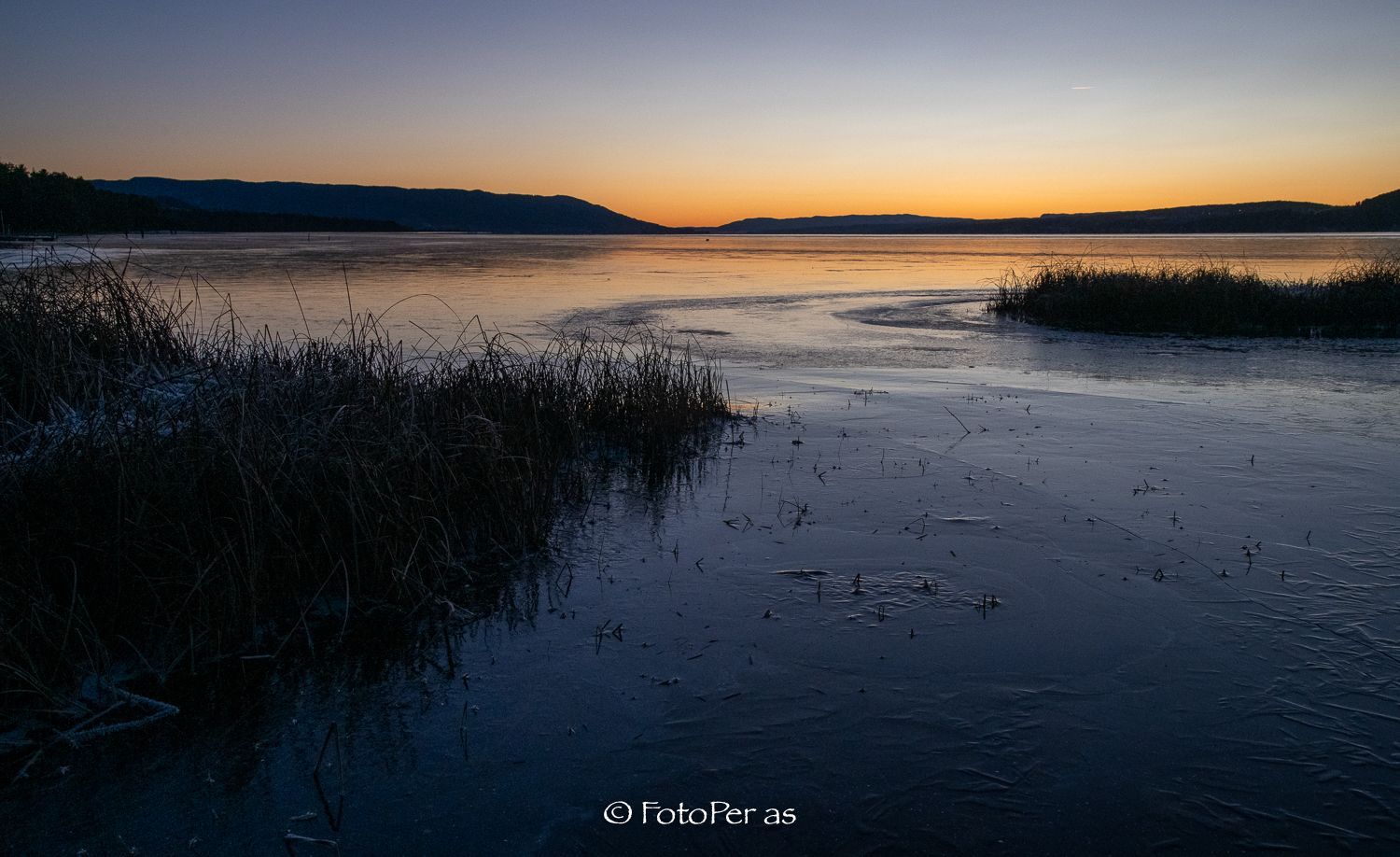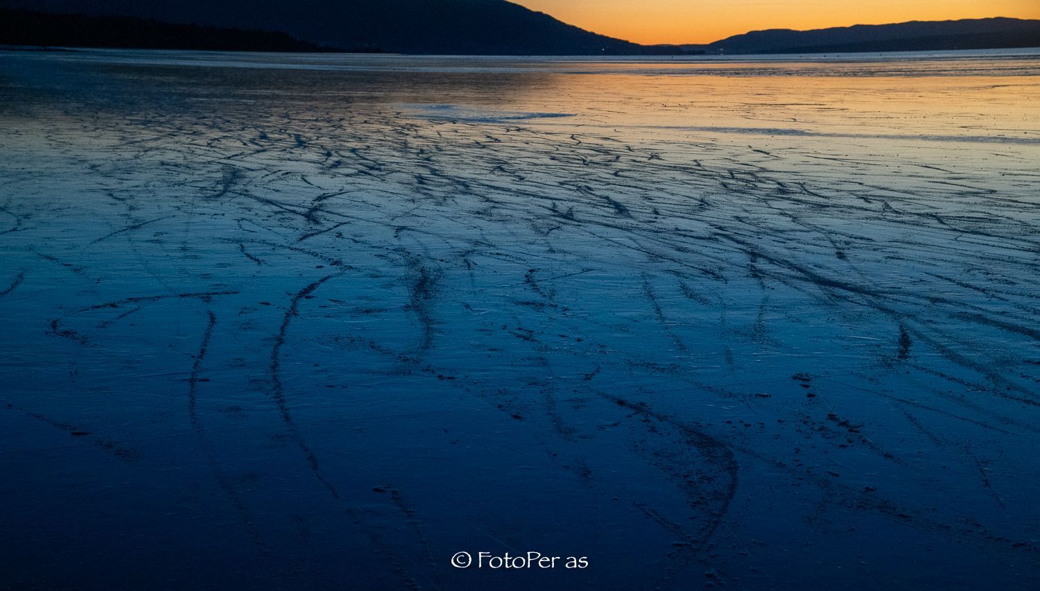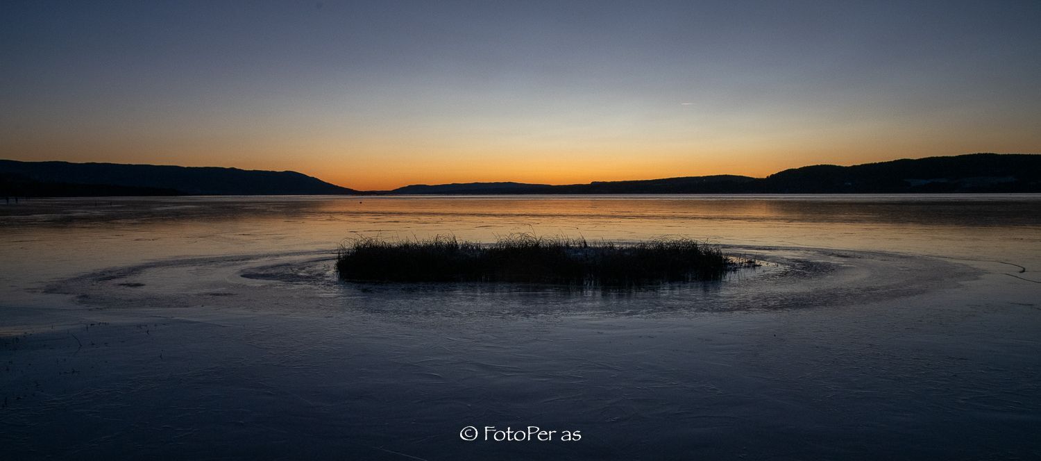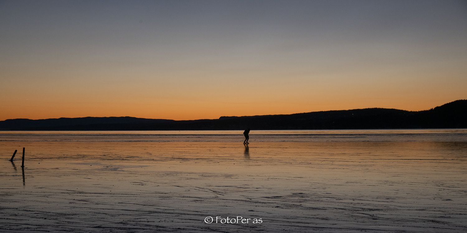 Lenge siden jeg har vært ute med kamera. Det har vært noen fine solnedganger i det siste, og jeg fikk endelig en tur til Røsholmstranda. Mange som var ute og gikk på skøyter da jeg kom, isen er sikker et stykke utover. Det er ikke noe problem å gå et stykke ut fra land mot Averøya. Etter sporene å dømme er det stor skøytetrafikk her. Det fine med Røsholmstranda er at det ikke er så dypt der om du skulle være uheldig å gå gjennom isen. Men våt og kald blir du.
