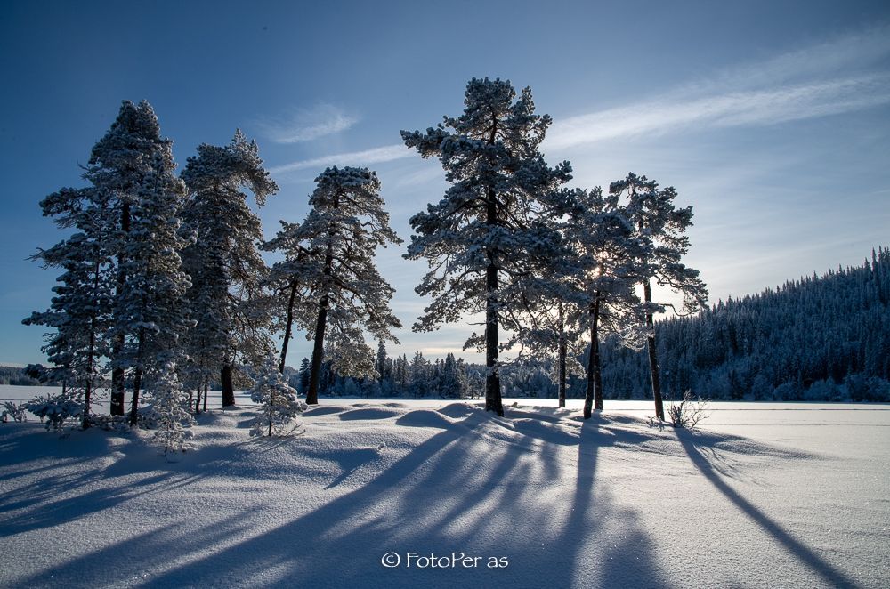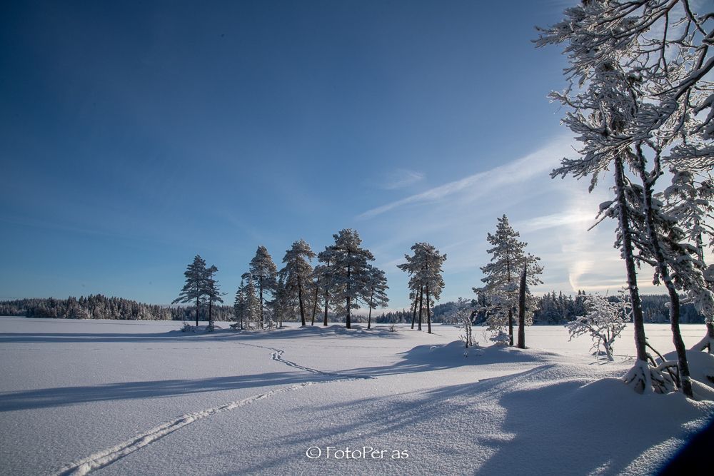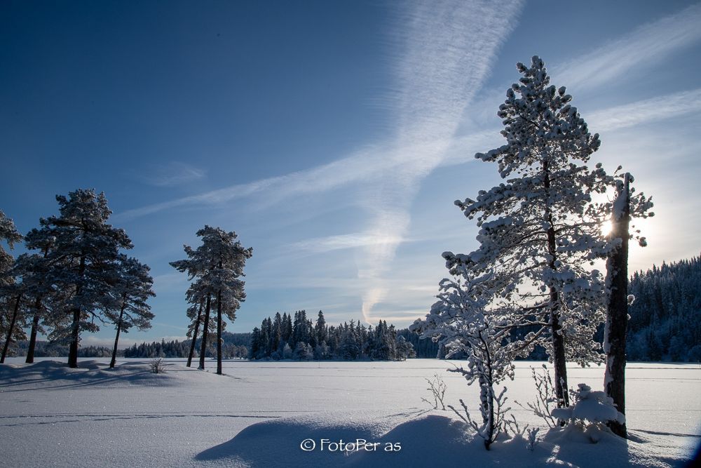Endelig en dag med sol, den må jeg bruke til en tur ut i kulda. Jeg ser at det er mange fine trær med snø på oppe på Ringkollen, og sola skinner mest der. Dit skal jeg i dag. På med stillongs, vømmølsjakke og bukse og noe varmt på beina. Og ikke minst varme votter, vanter og lue. Da er jeg klar for ei økt på Ringkollen.