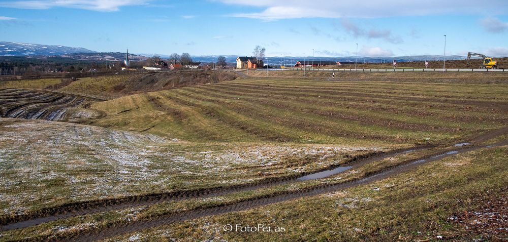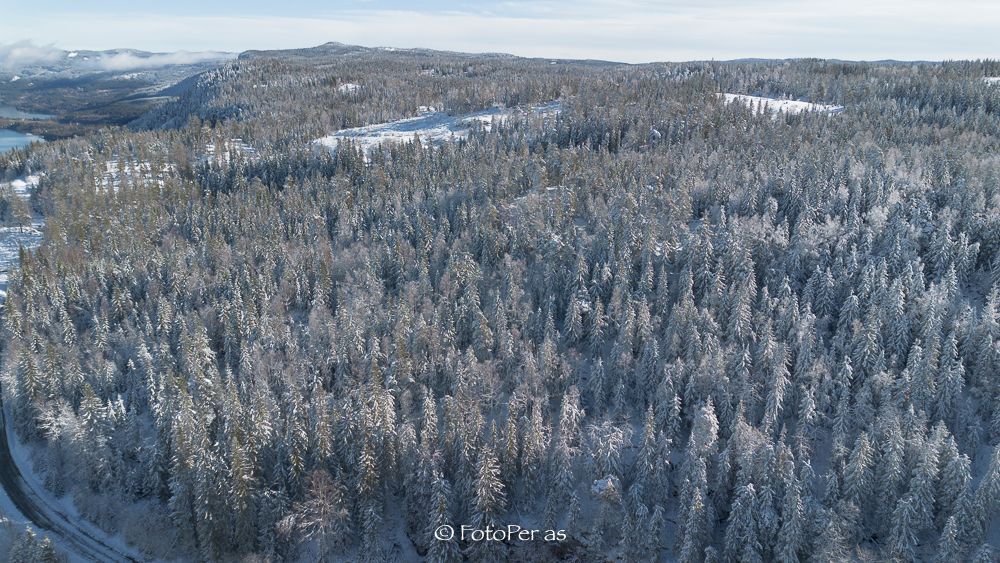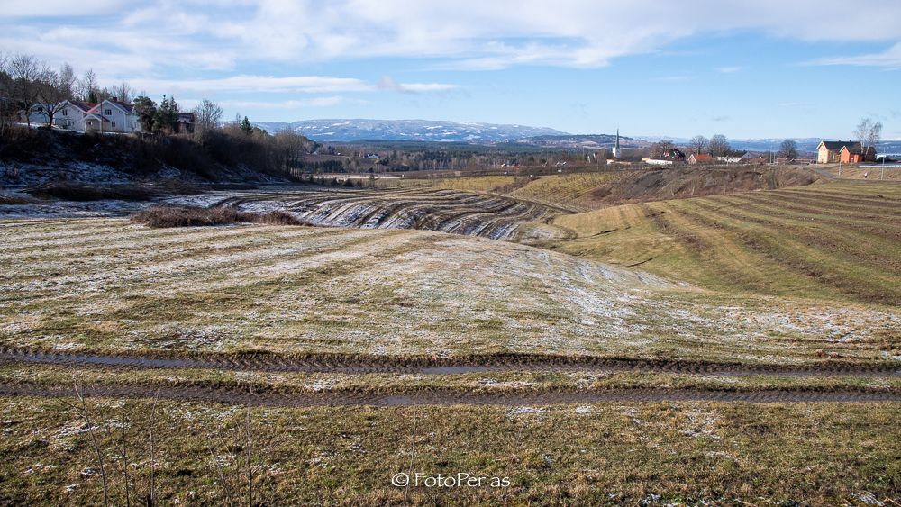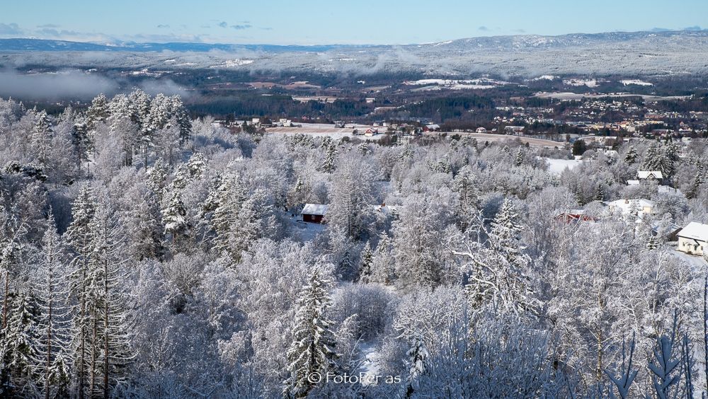 Utsikten fra Ringkollveien byr på nysnø, vår og nysnø igjen når du ser bakover i bildet.