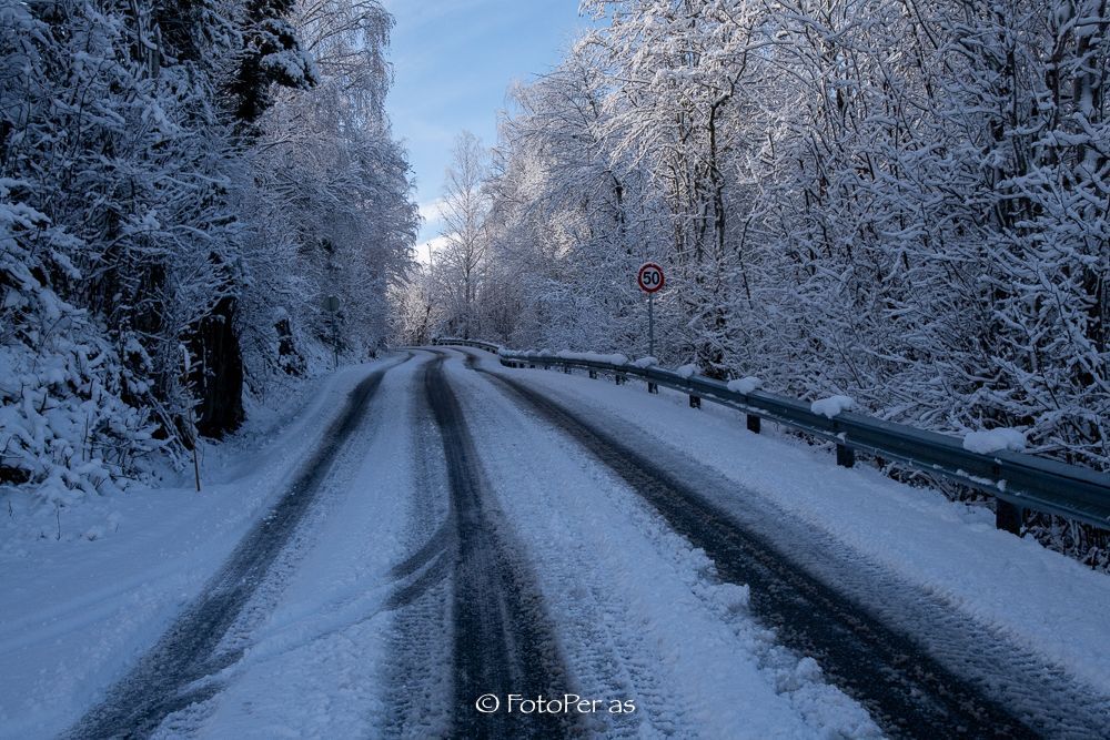 Jeg prøver meg opp til Ringkollen først. Etter Klækken blir det snart ganske mye snø på veien, det er sporete og ikke brøyta. Har tenkt meg opp til bommen, men jeg snur før jeg kommer så langt. Ingen grunn til å kjøre lenger på dette føret.