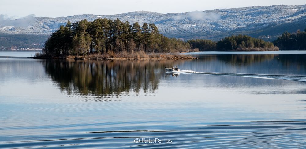 Jeg rakk så vidt å ta et bilde før denne båten kom og ødela idyllen.