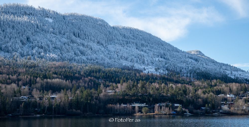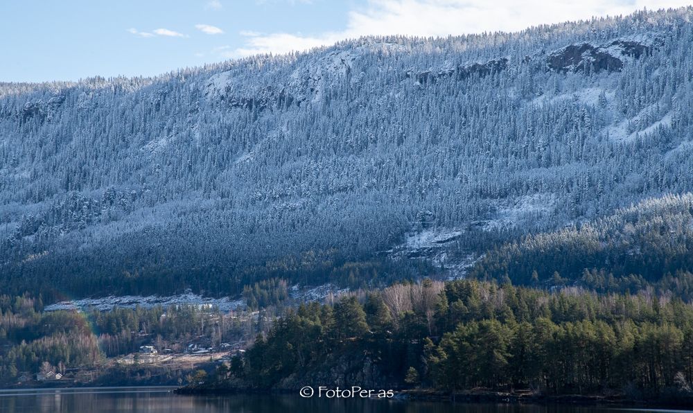 Det var vakkert ved fjorden i dag med nysnøen på skauen. Ikke vanskelig å se skille mellom vår og forlenget vinter.