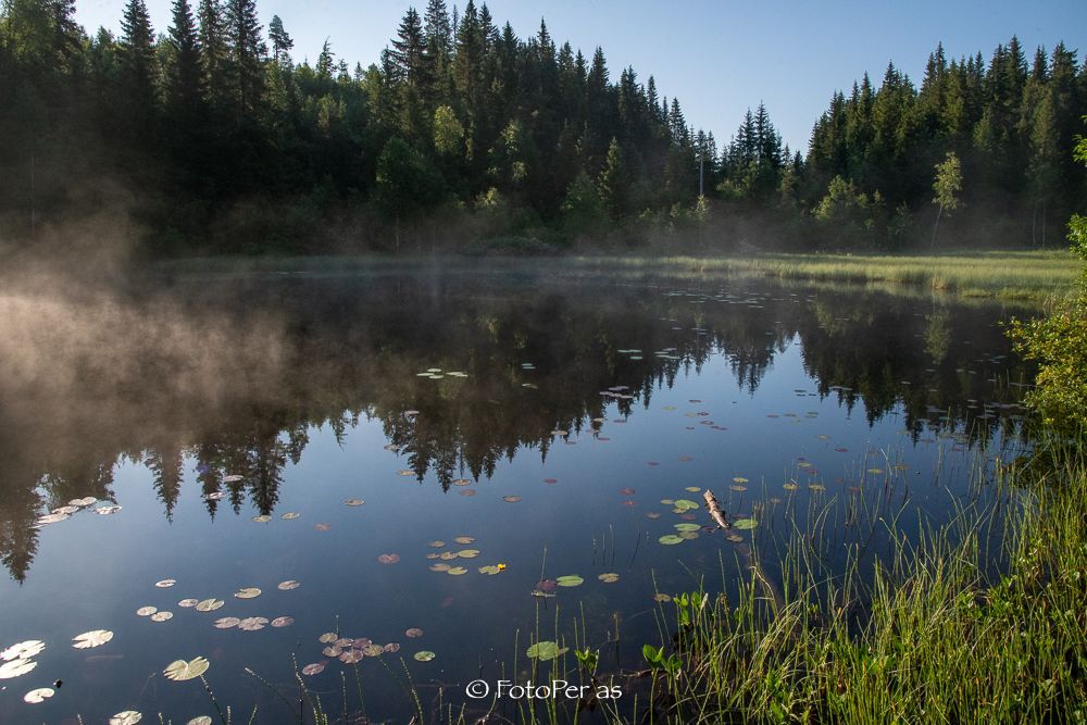 Det er tidlig på morran. Ja, klokka er ikke mer enn seks, men du har sovet som en stein på hemsen i natt. Du var sliten etter den lange turen du gikk på Krokskogen i går. Nå sitter du på trappa med en nykokt kaffekopp og nyter den fine soloppgangen. Du ser at det ligger tåke nede ved Nordsetertjernet, det er bare 5-6 minutter å gå ned dit.