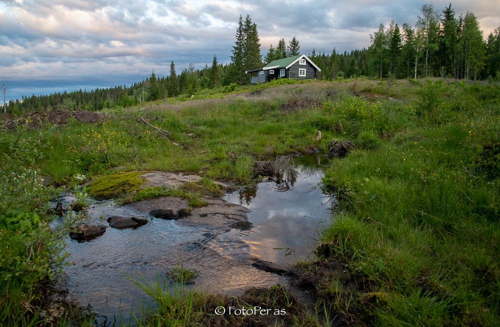 Når du er på hytta, dropper du barbermaskin. Dusjing er uaktuelt, du tåler å bli svett her en dag eller to uten å må dusje. I verste fall kan du bade i Nordsetertjernet. Ja, du kan også bade i bekken som renner nær hytta når det er nok vann i den. Men det går an å vaske seg der om det er lite vann også. Friskt og kaldt.