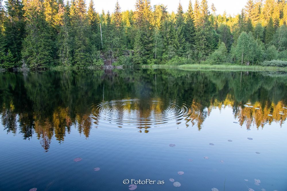 Det spretter opp fisk på hele tjernet, og lager fine ringer i vannet. Her kan du få deg fisk til frokost.