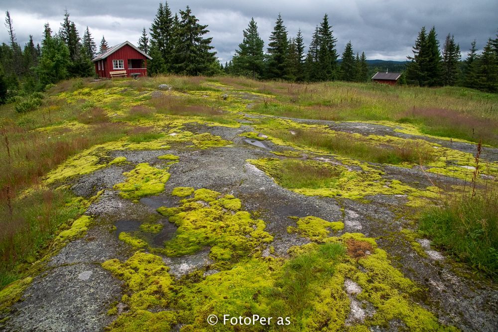 Hytta ligger sentralt til, men likevel er du utenfor alfarvei. Det er ofte du treffer på andre mennesker, særlig midt i uka. Du ser kanskje noen som går nede på stien til Sørsetra, men kommer sjelden i kontakt med dem. På bildet ser du hytta oppe til venstre, Sørseterveien og Nordsetertjernet til høyre.