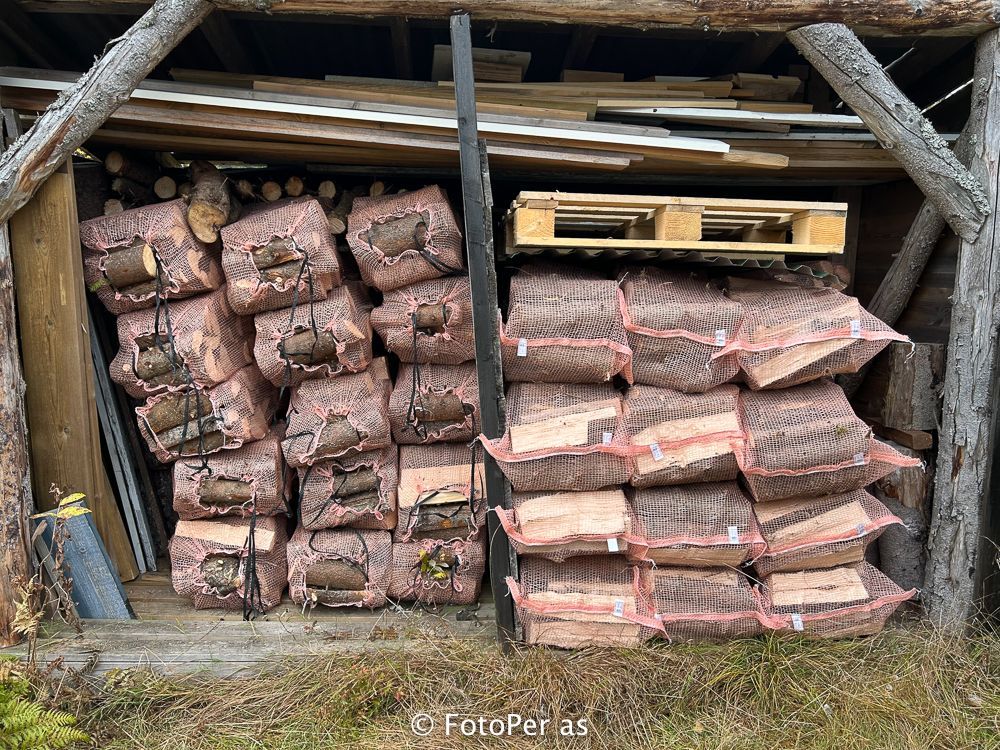Du fyrer godt, men vedskjulet er fylt opp med tørr og fin ved så det er bare å hente mer.