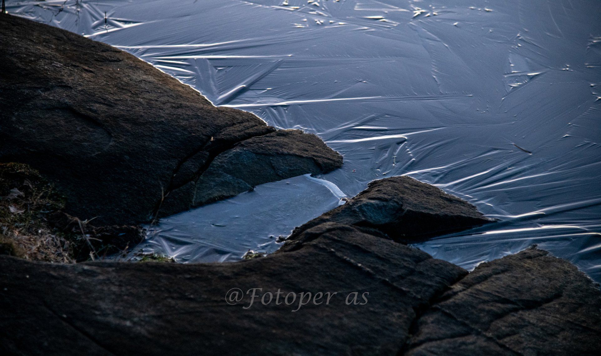 Plutselig smeller det og jeg skvetter til, det er isen som legger på seg i kulda.