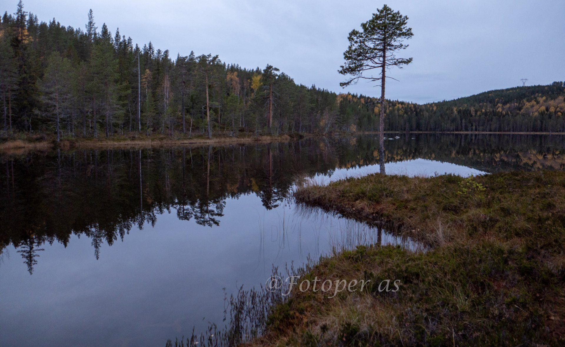 Det begynner å skumre nå, men jeg må bort til Øvre Kollsjø og ta et bilde der før jeg kjører hjem.