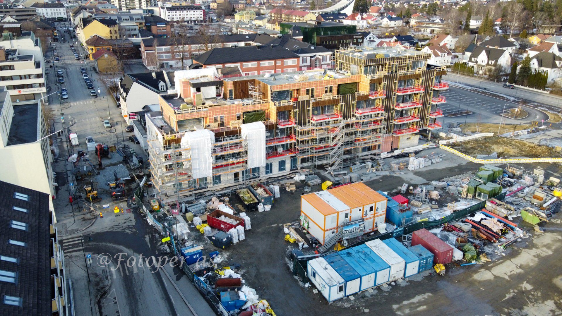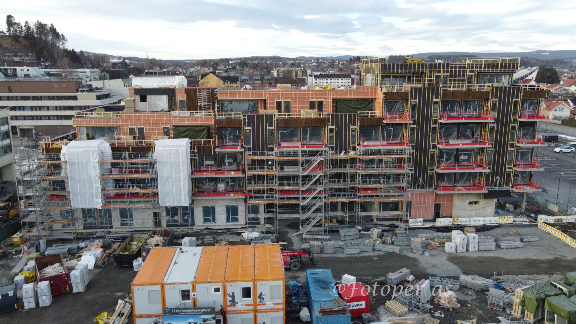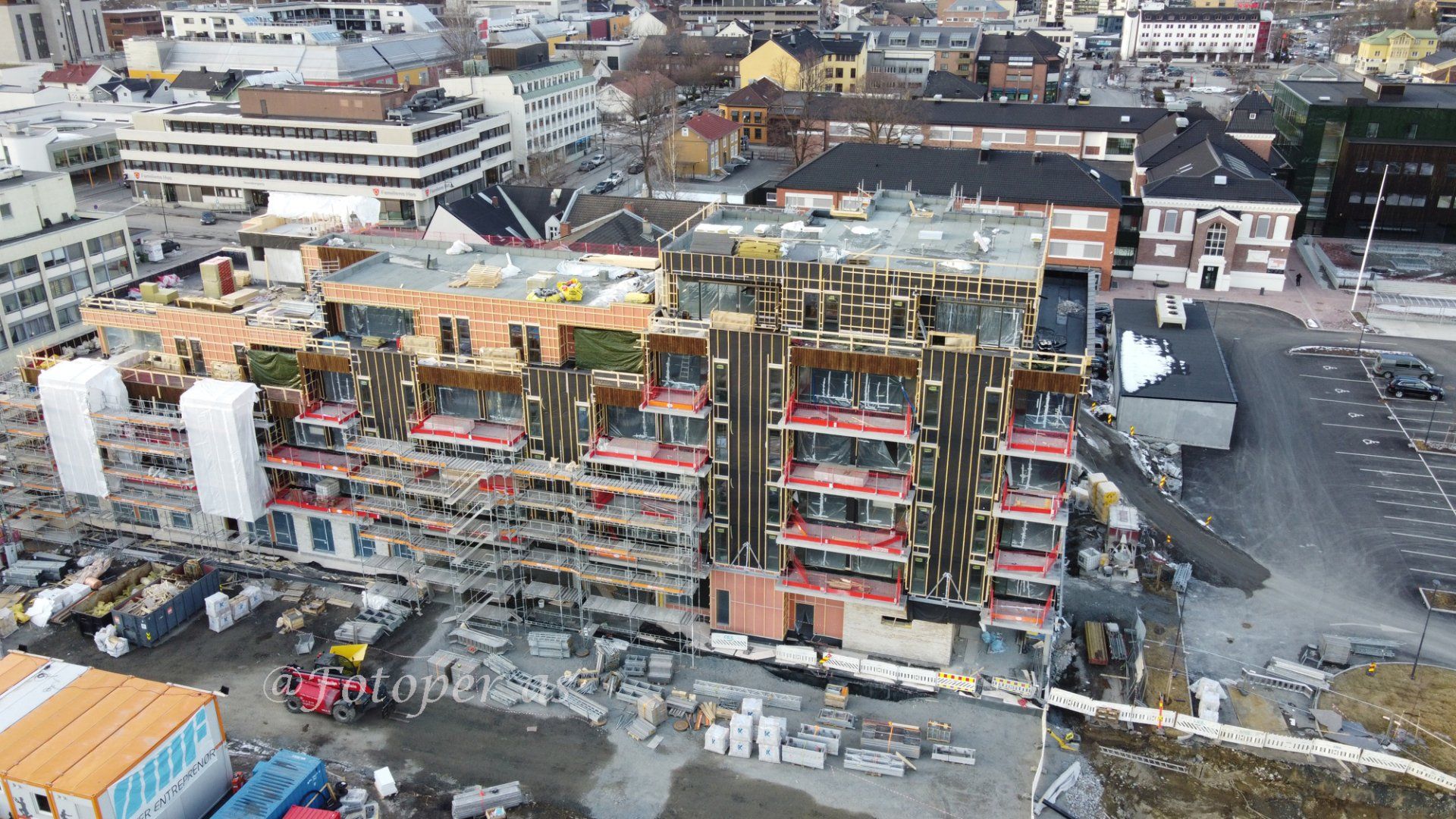 Sundgata Terrasse stiger til værs og frister kanskje de som ikke har kjøpt leilighet der enda. Utsikten blir bra, inntil det bygges på Ford-tomta.