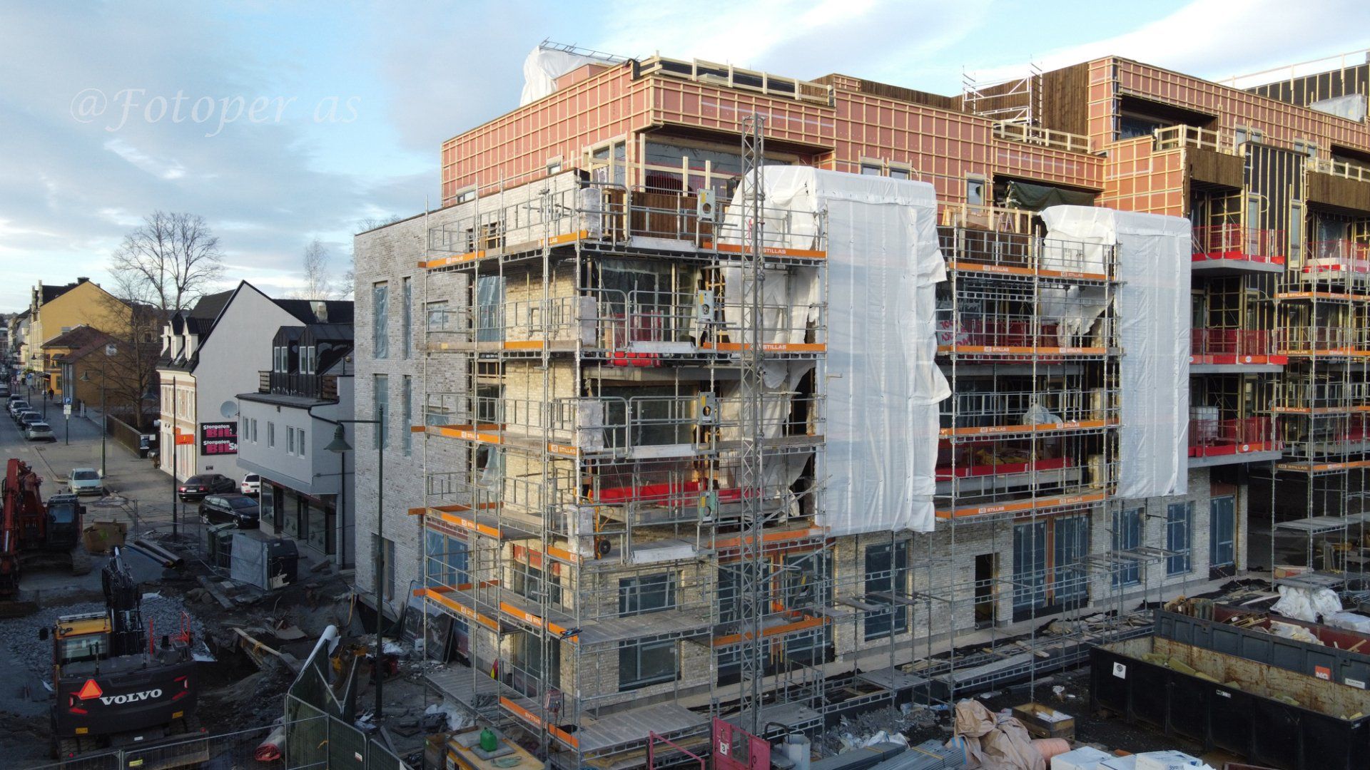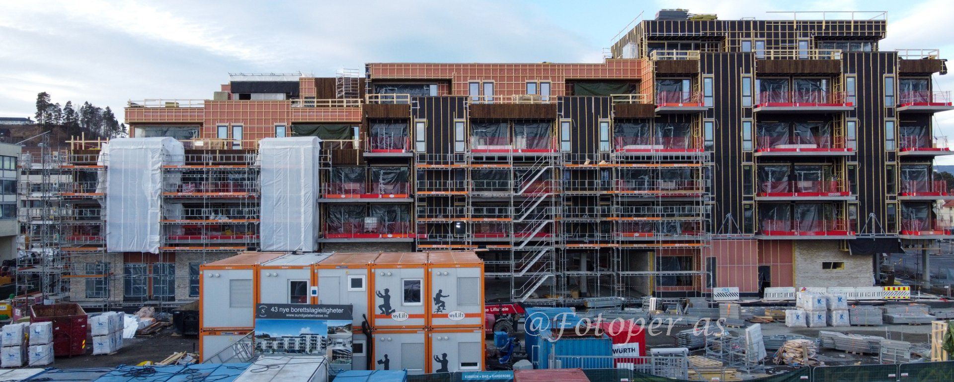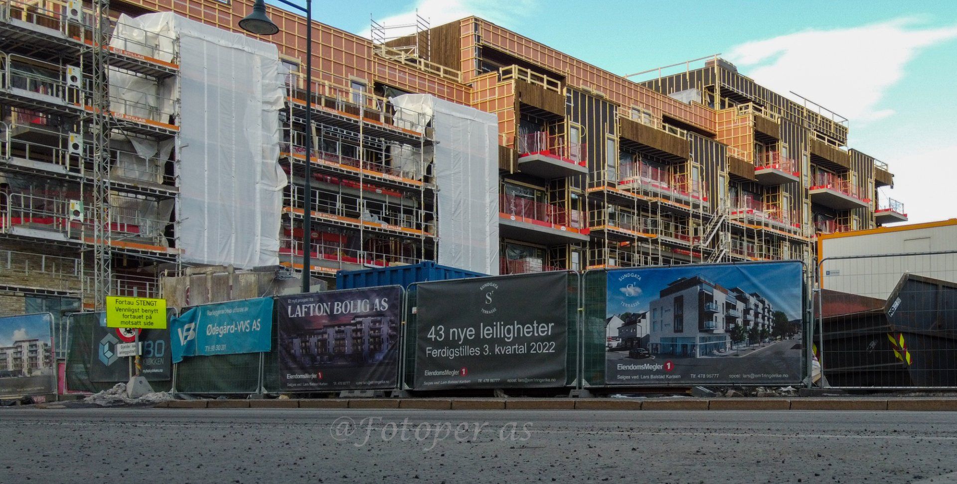 Sundgata Terrasse stiger til værs og frister kanskje de som ikke har kjøpt leilighet der enda. Utsikten blir bra, inntil det bygges på Ford-tomta.