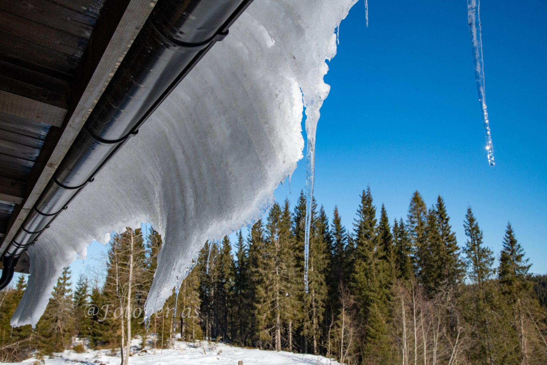 Jeg leste føremeldingen og smøretipset på appen til Skiforeningen søndag morgen. Klister ble anbefalt. Da anbefalte jeg meg selv om å gå på beina inn til Sørsetra. Kan jeg ikke smøre med blått, grønt eller fiolett er det ikke skiføre for meg. Jeg begynte å gå ved 11-tiden fra Kleivstua, men måtte oppom hytta en tur for å se hvordan det sto til der. Snøen hang utenfor taket og det drøpp fra istappene, her var det påskestemning. Etter mange forsøk klarte jeg å få bilde av en dråpe i farta.