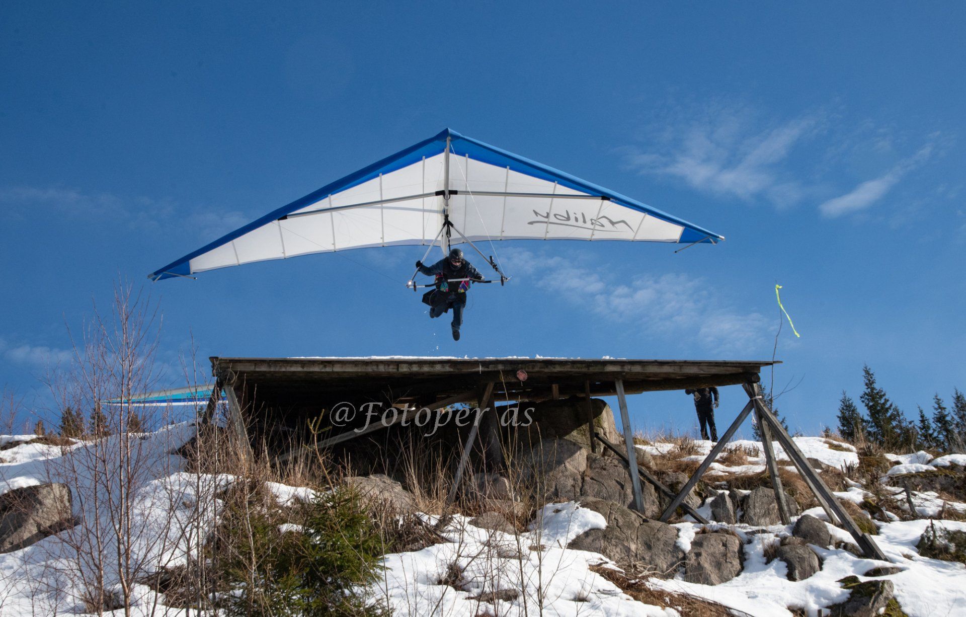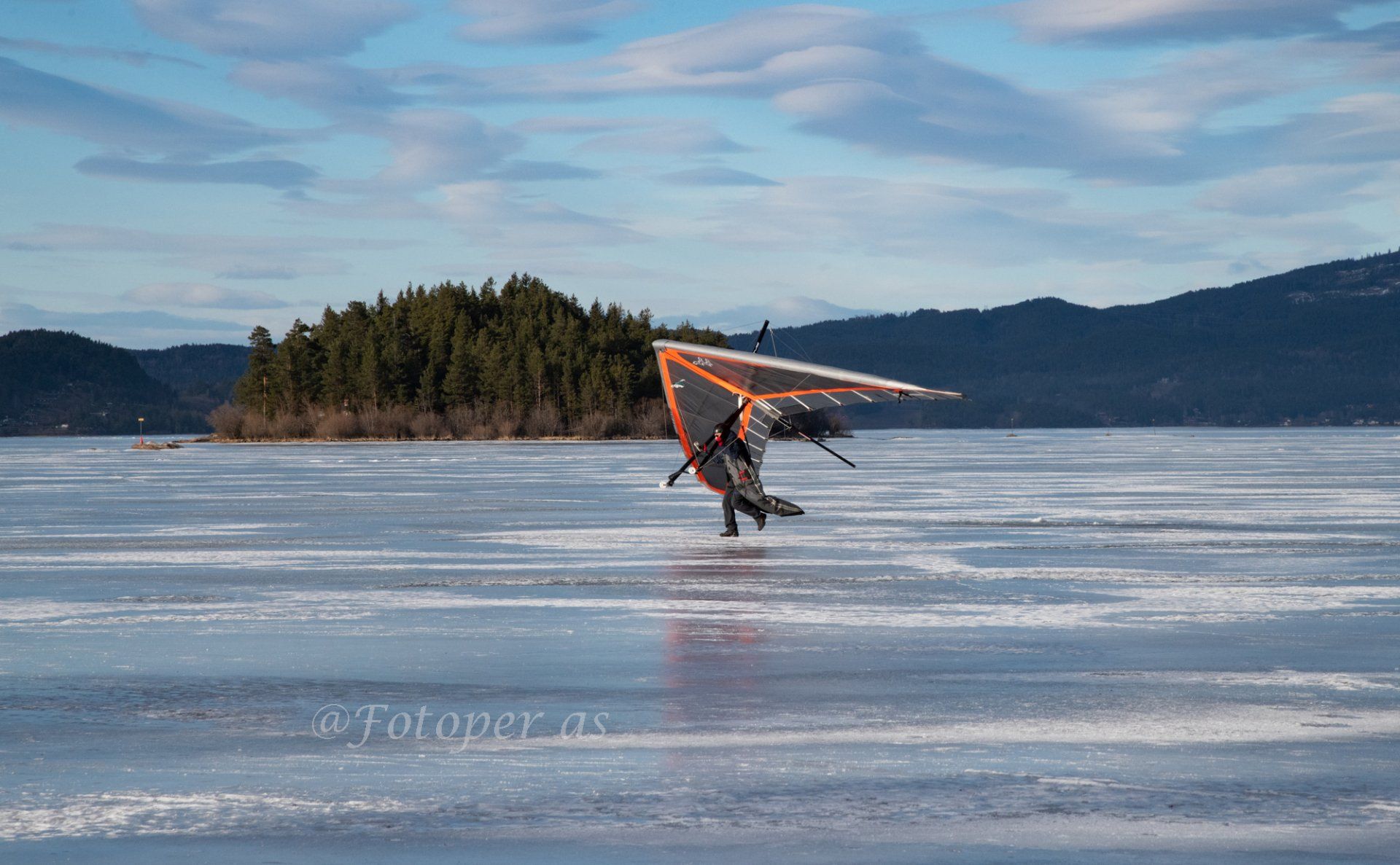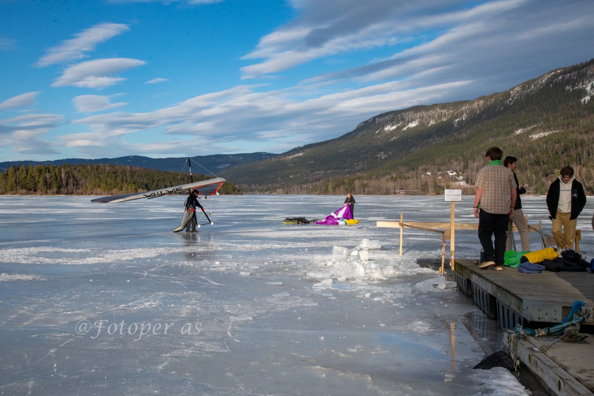 Det var ikke alle som hadde like god kontroll over landingen. Jeg fikk en med hangglider som "angrep" meg bakfra. Jeg så ikke i retningen han kom og hørte heller ikke noe før han kom susende like over hodet på meg. Han hadde full fart mot brygga og prøvde å bremse alt han kunne. Han stoppet så vannspruten sto ved brygga, flaks at han ikke datt i råket til isbading.