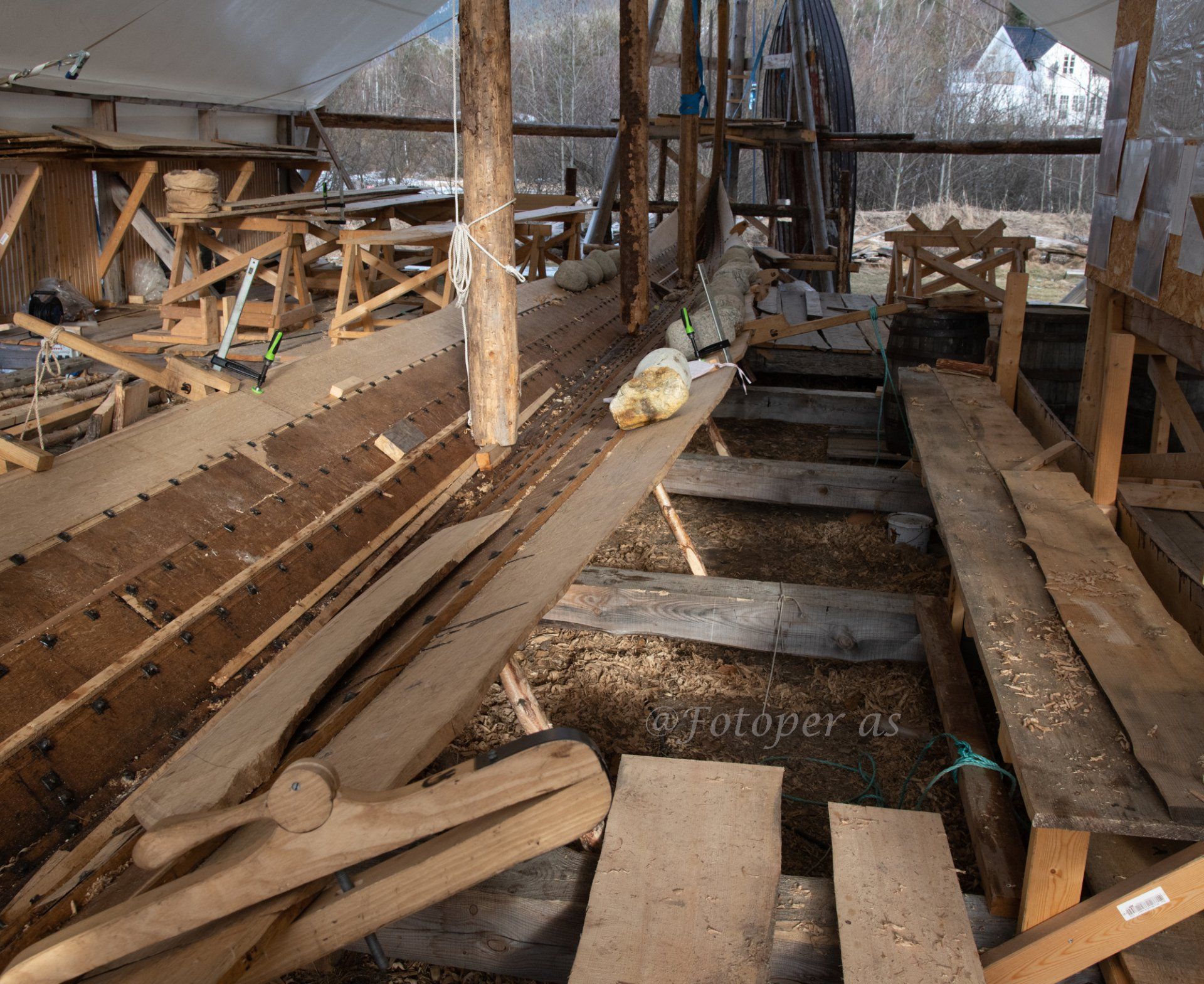 Ved Sunnvollstranda bygges et vikingskip, Klåstadskipet, på dugnad. Mange timer er brukt og vi kan se det begynner å bli et flott skip, men mange timer gjenstår enda.