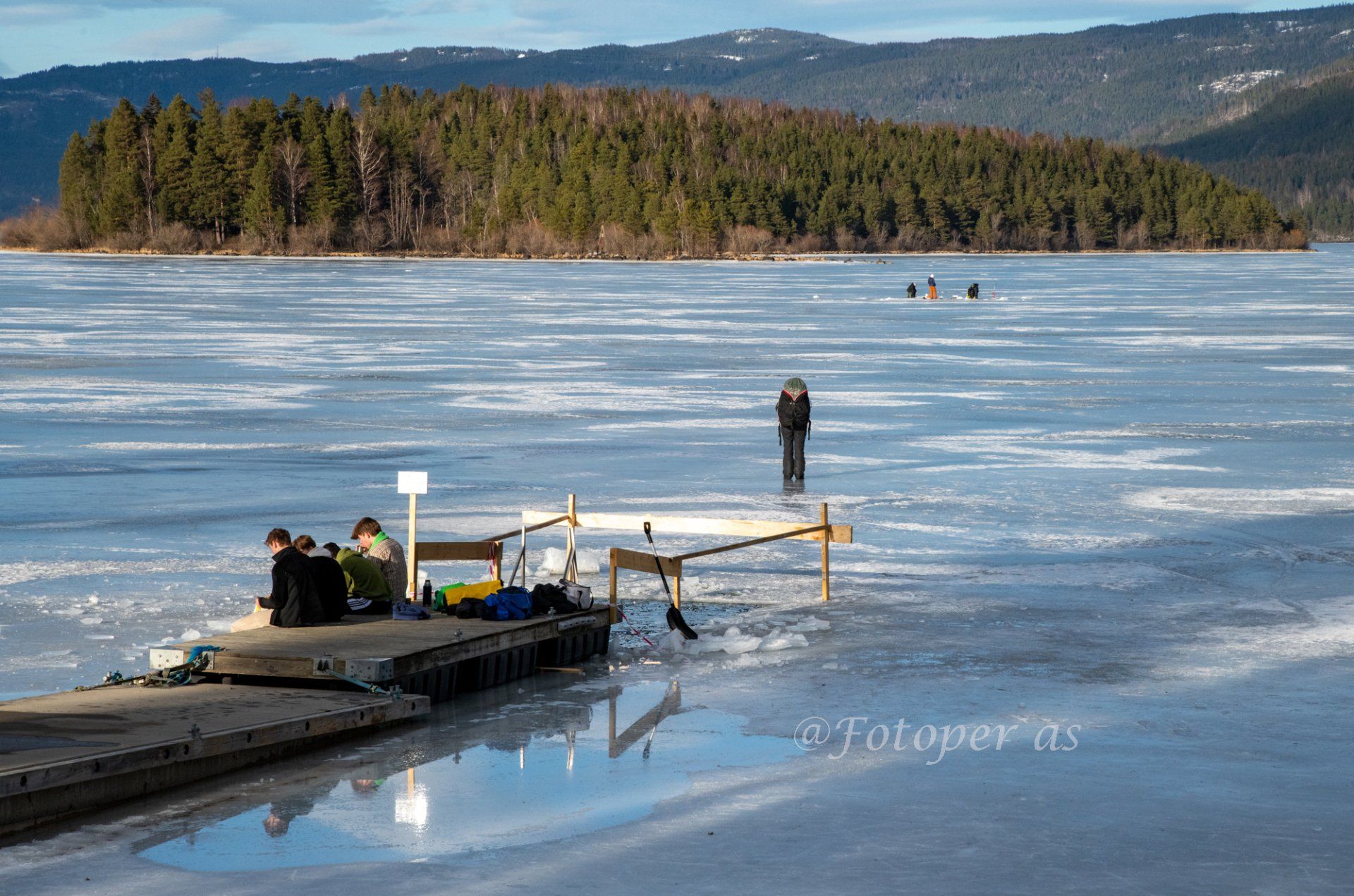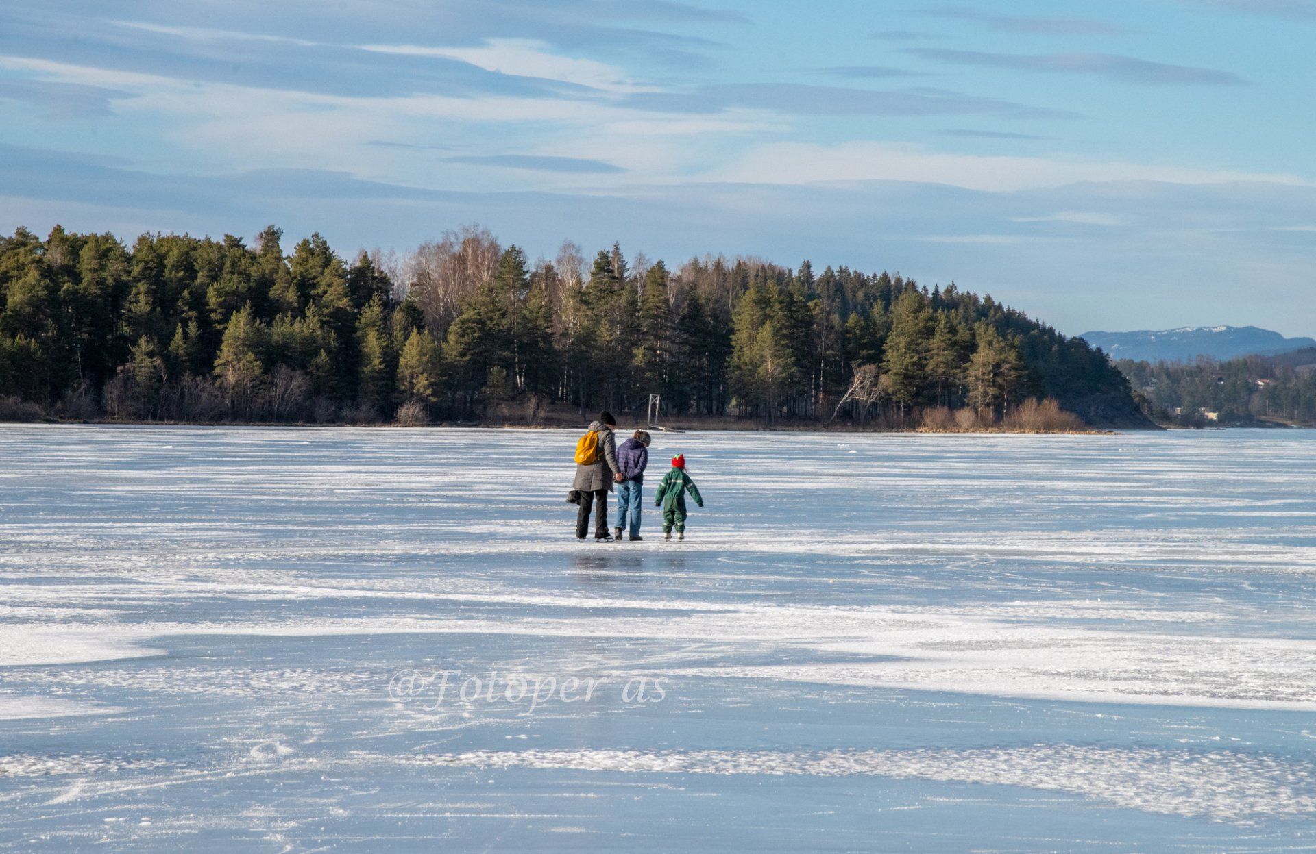 Jeg prøvde å gå litt på isen, men den var veldig glatt, så jeg beveget meg forsiktig. Andre gikk på skøyter, mens noen gutter fjernet isen etter natta, før de skulle isbade. Huttetu....