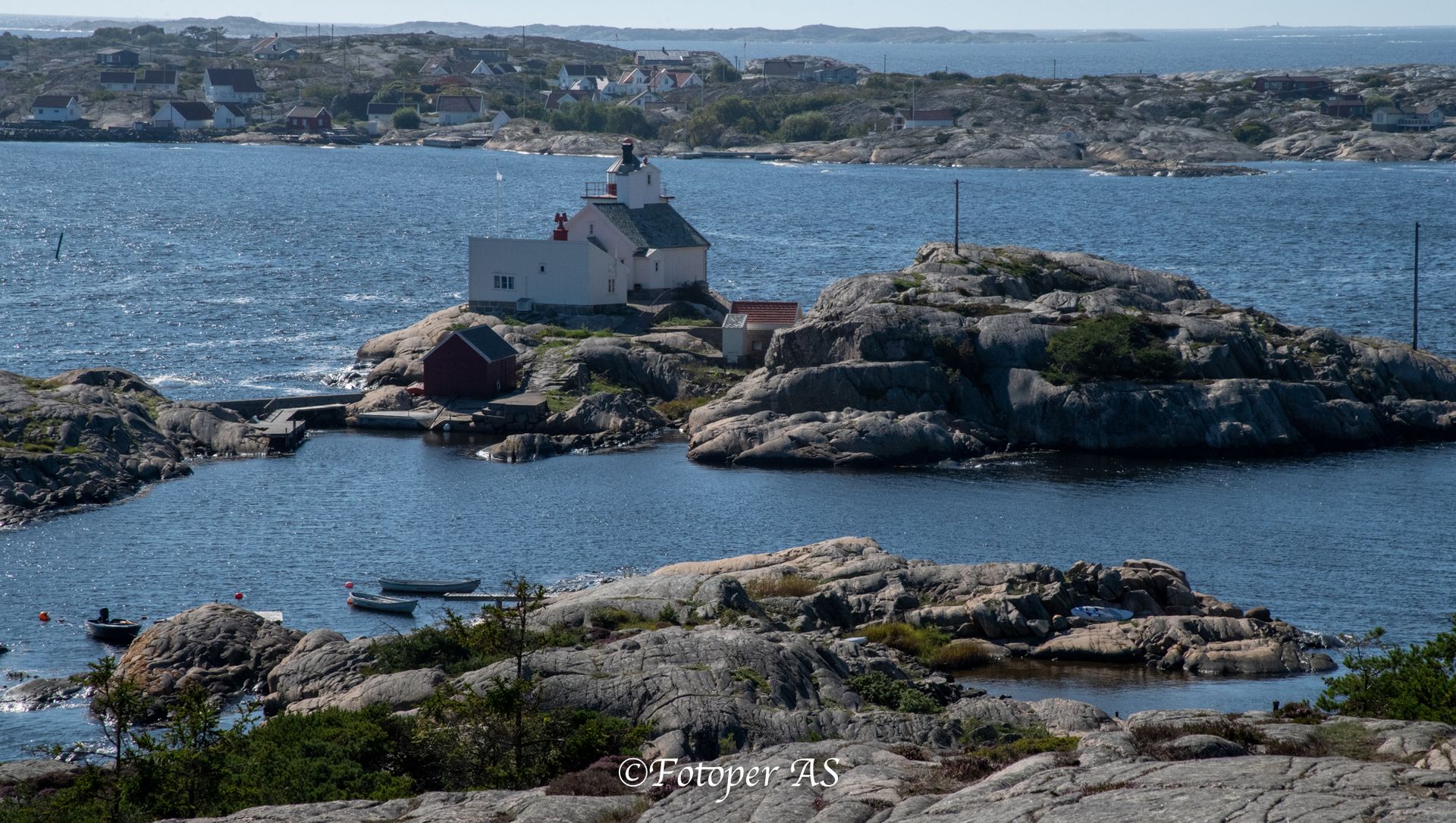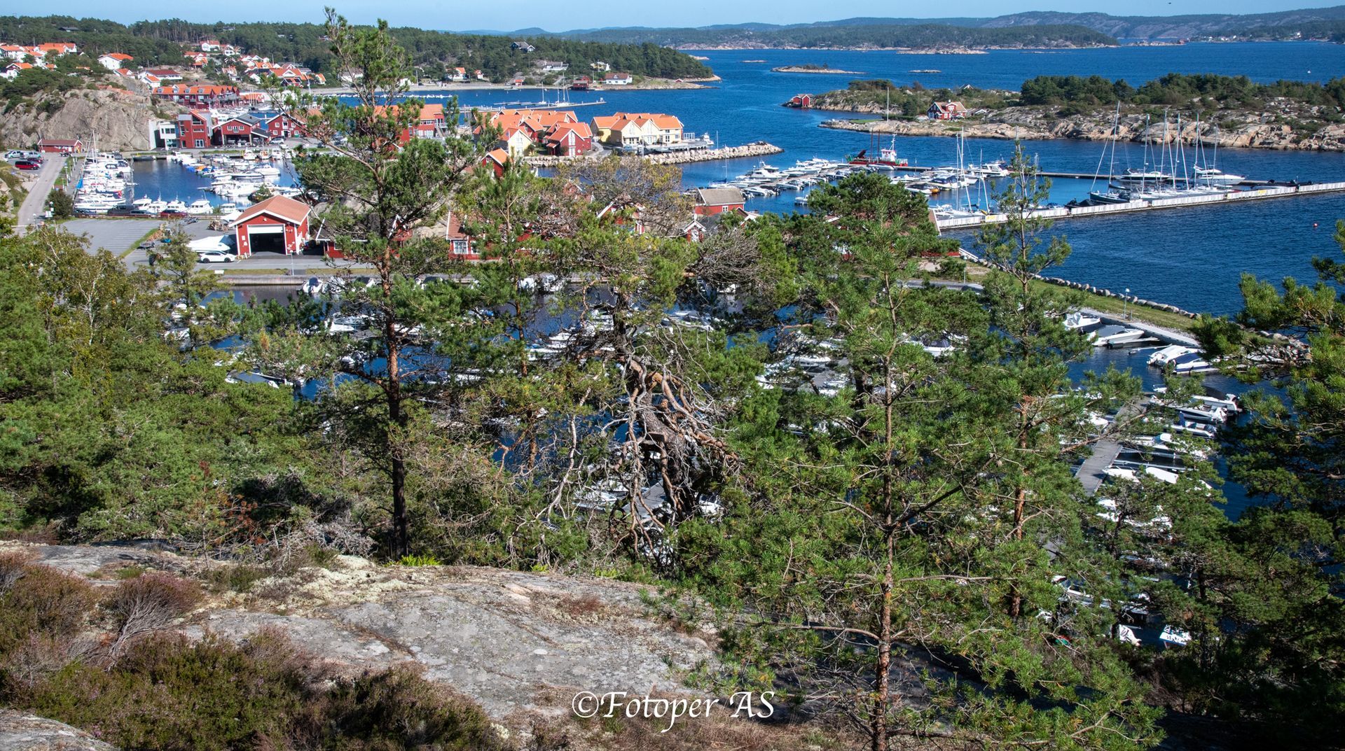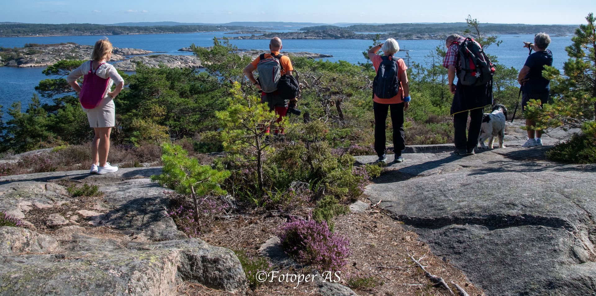 Etter en nydelig lunsj på Første Reis var vi klare for å gå kyststien ut mot Homlungen fyr. Vi kom oss ikke helt dit, men vi så det. Vi kunne se hvor kort strekningen var til Sverige. Rutebåten bruker 30 minutter mellom Strømstad og Skjærhalden, Jan Torkel bruker 20 minutter med egen båt. Det er også fint å ta båt mellom øyene ute i skjærgården.