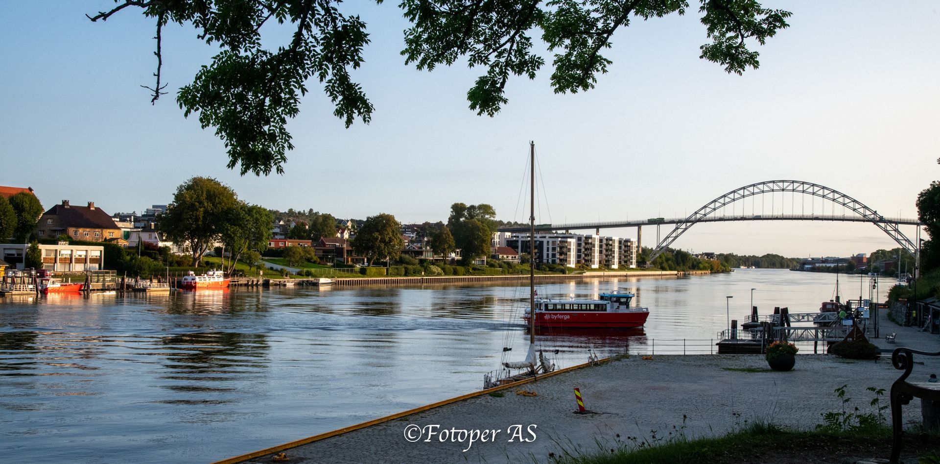 På den andre sida av elva bygges det leiligheter på Værste, området etter tidligere Fredrikstad Mekaniske Verksted. Her ligger også stadion til Fredrikstad fotballklubb. Restaurant Slippen ligger til venstre på bildet.