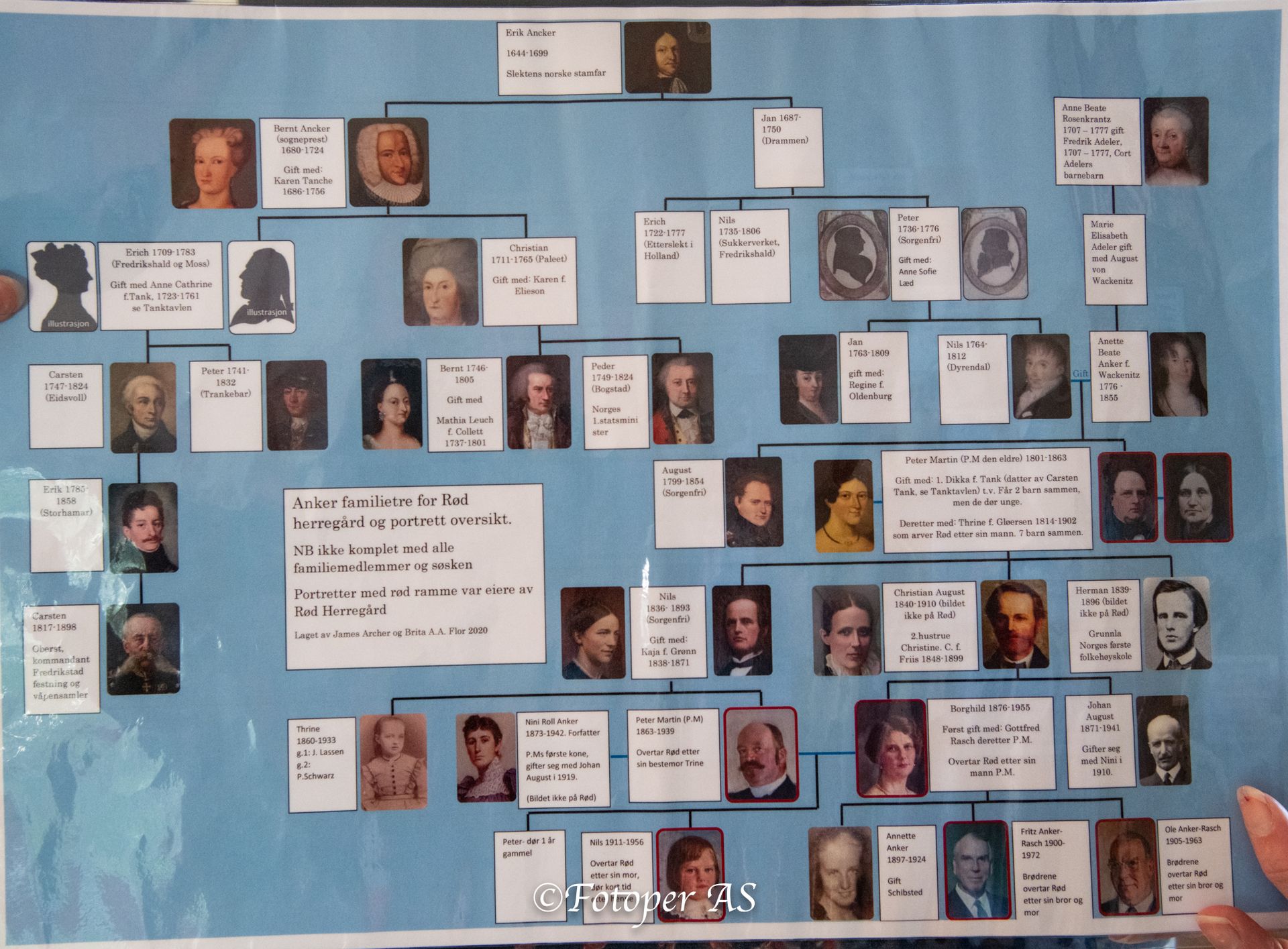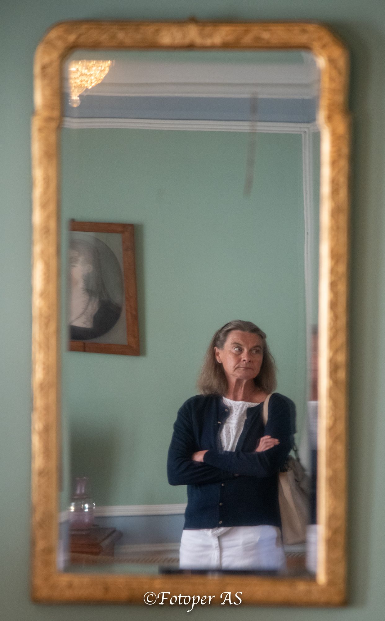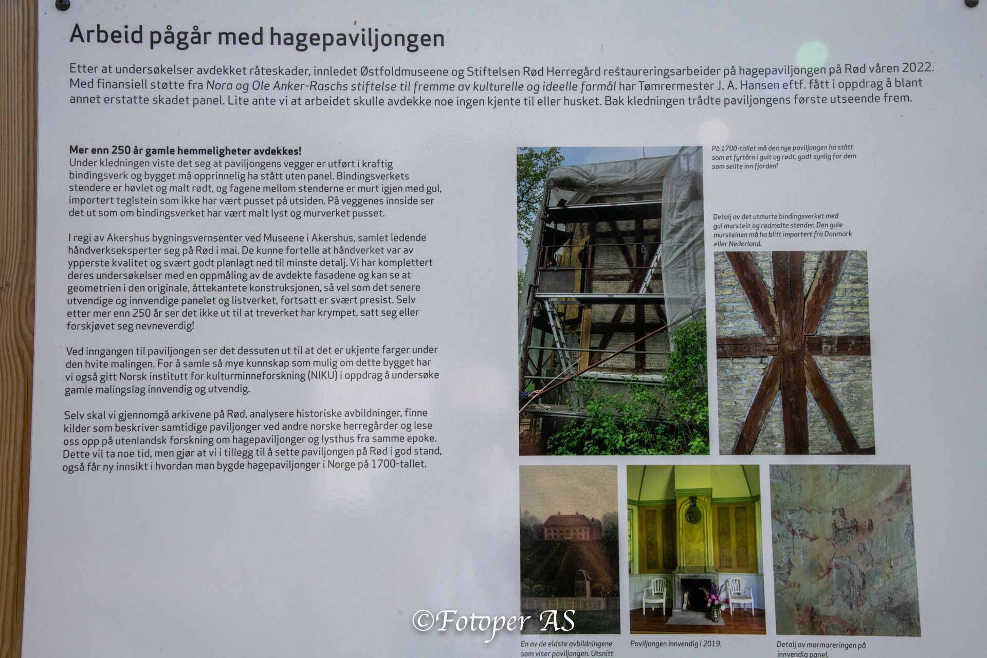 Onsdag sto Rød herregård i Halden på programmet, og der skulle vi være klokken 10. Guide var bestilt, men i tillegg var også Trine Grønberg Anker Rasch med. Hennes tippoldefar var eier av Rød en gang i tiden. Halden historiske Samlinger er et museum tilknyttet Østfolmuseene. Museet forvalter bl.a. Rød herregård, som er et av Norges største og best bevarte lystgårdsanlegg. Den eldste delen av bygget er fra 1600-tallet. Når det gjelder eierforholdet står dette i Wikipedia: Ankerfamilien bodde på Rød i fire generasjoner frem til 1956, da Nils Anker, sønn av Borghild og P.M. Anker, døde ugift og uten livsarvinger.