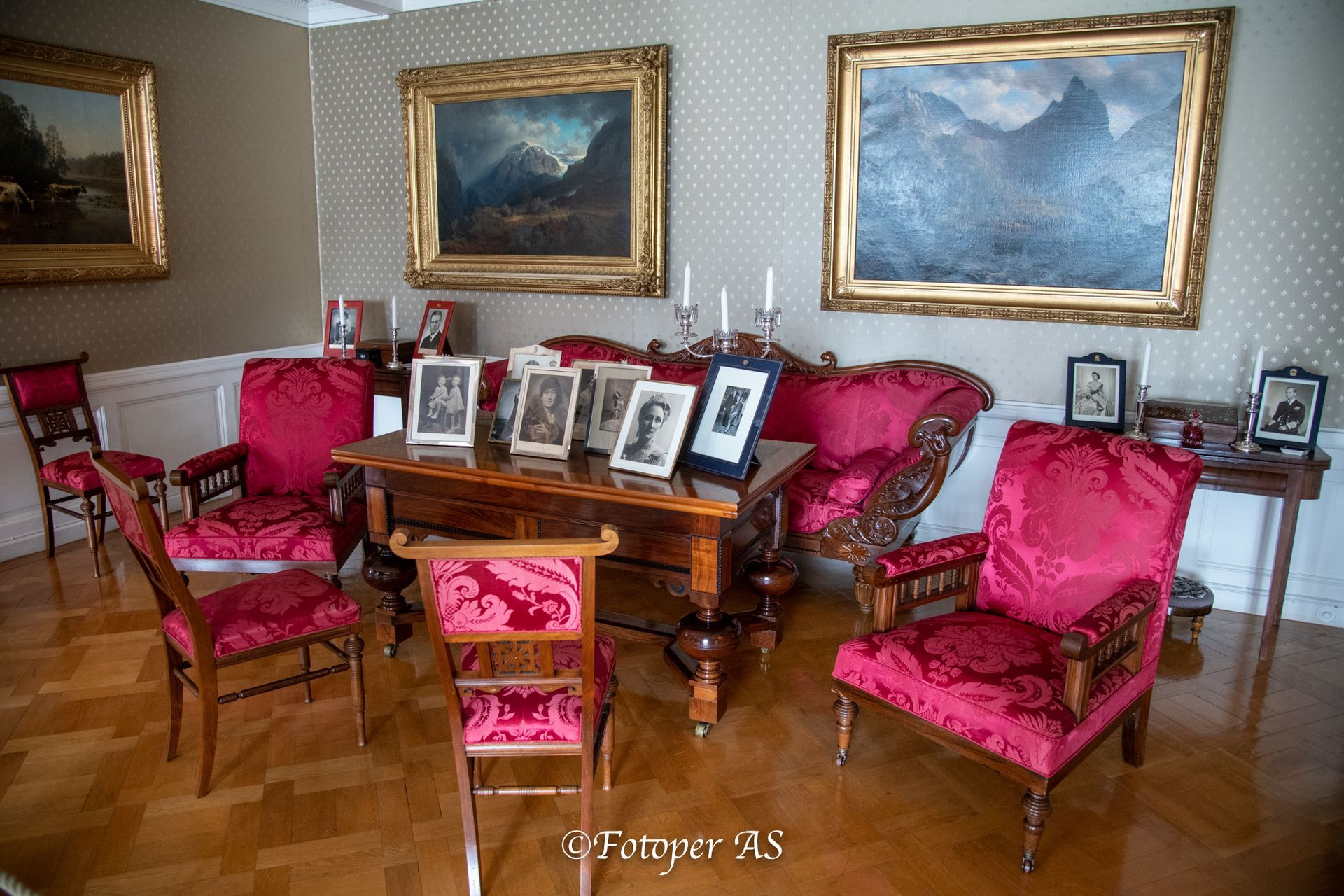 Vi fikk Trines personlige minner fra gården, bl.a. mintes hun julen da hun som barn var mer hos de ansatte på det store kjøkkenet enn i stuen der hun måtte sitte og være "snill pike".