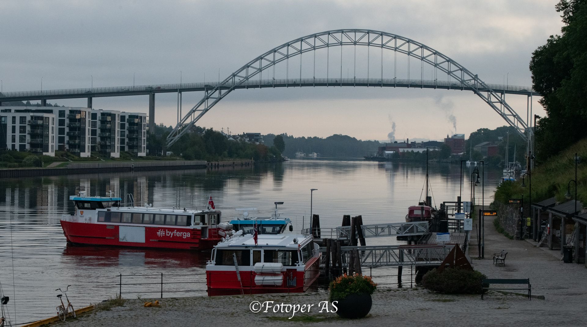 Sola var på vei opp og jeg fant ut at nede ved brygga der Byferga går må det være fint. Og det var det. Kanskje byferge kan være aktuelt transportmiddel på Storelva? Ferga er forøvrig gratis å bruke, og den går ikke bare tvers over elva, men også inn til sentrum i "nye" Fredrikstad.