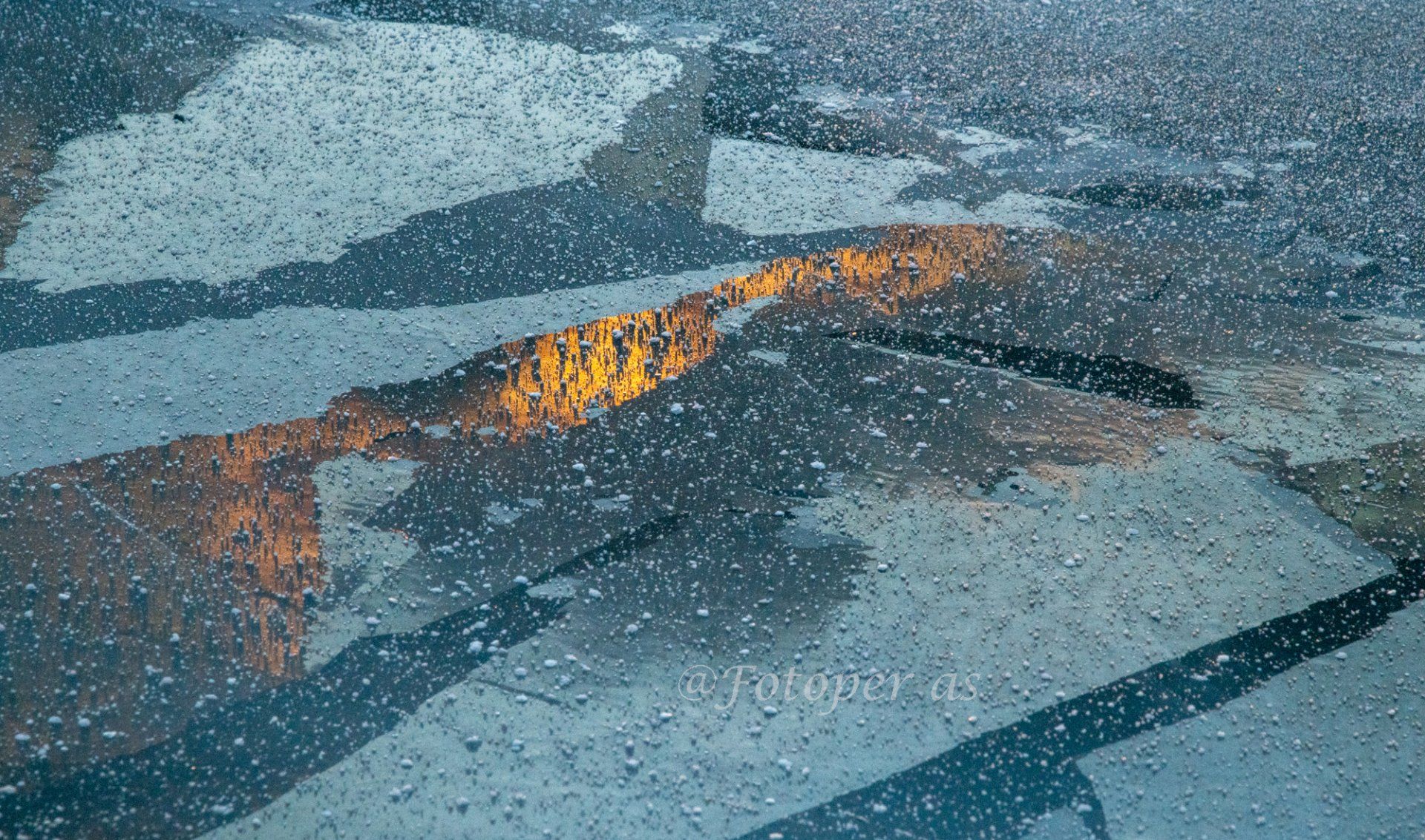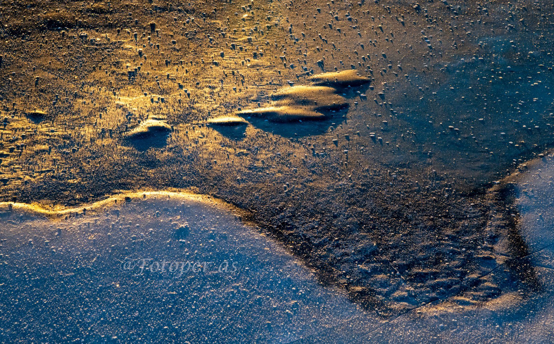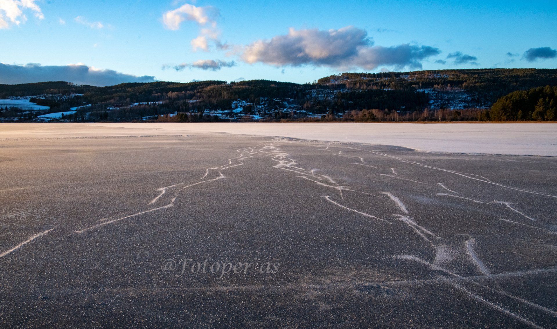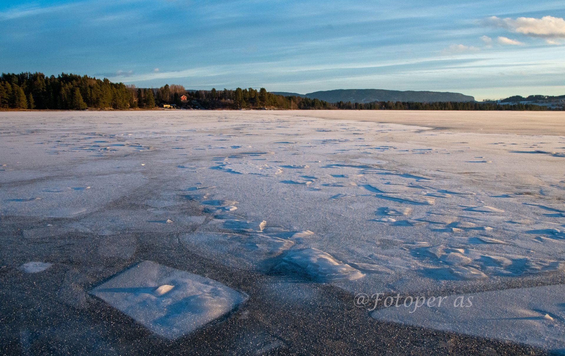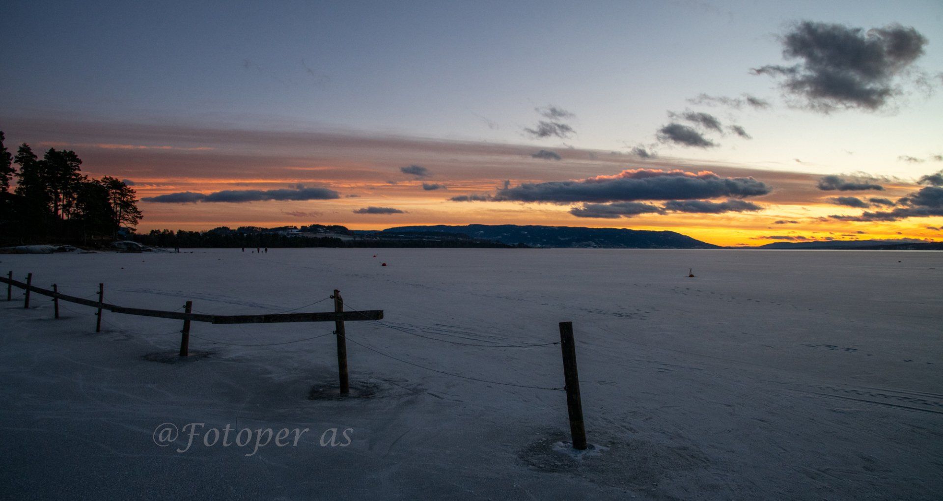 Ja, så ble det Røssholmstranda i solnedgangen igjen. Det vil si, jeg var ute i god tid så jeg fikk noen bilder før sola krabba nedover. Dessverre var det et lag med noe hvitt på isen, derfor var det nesten ikke noe klar is.