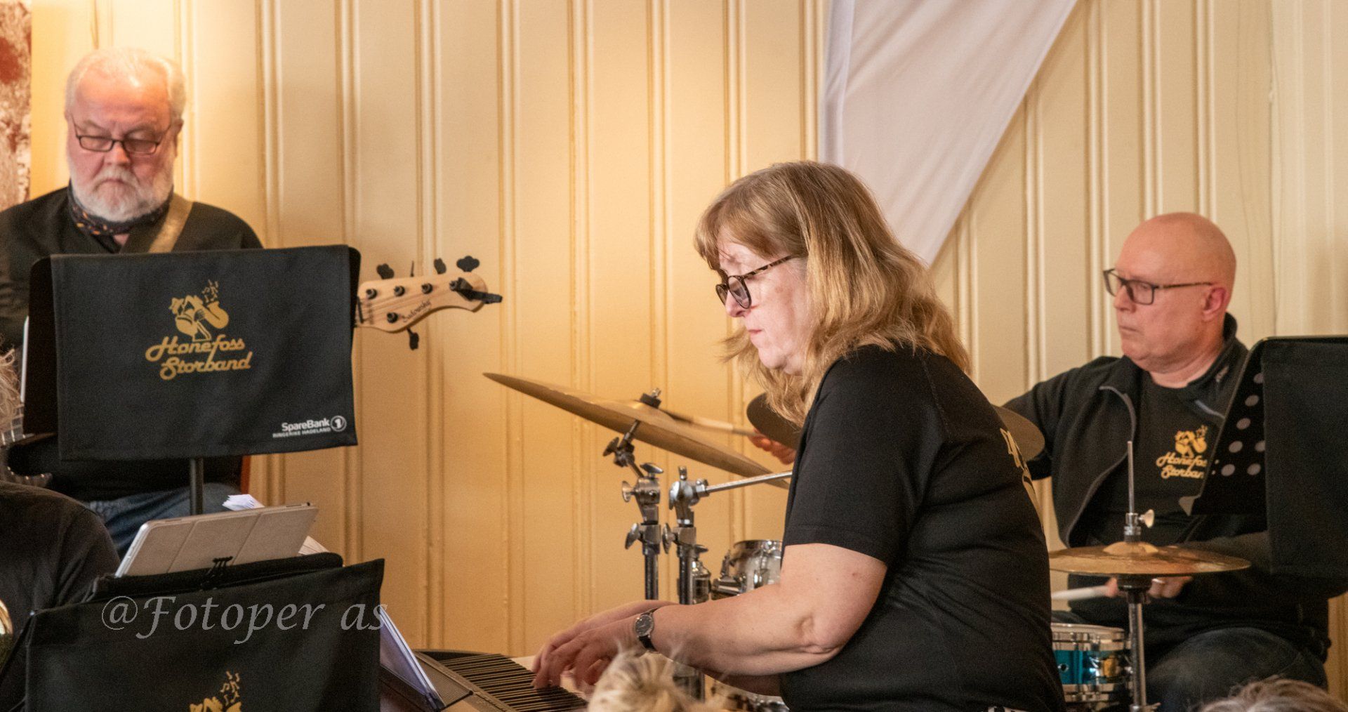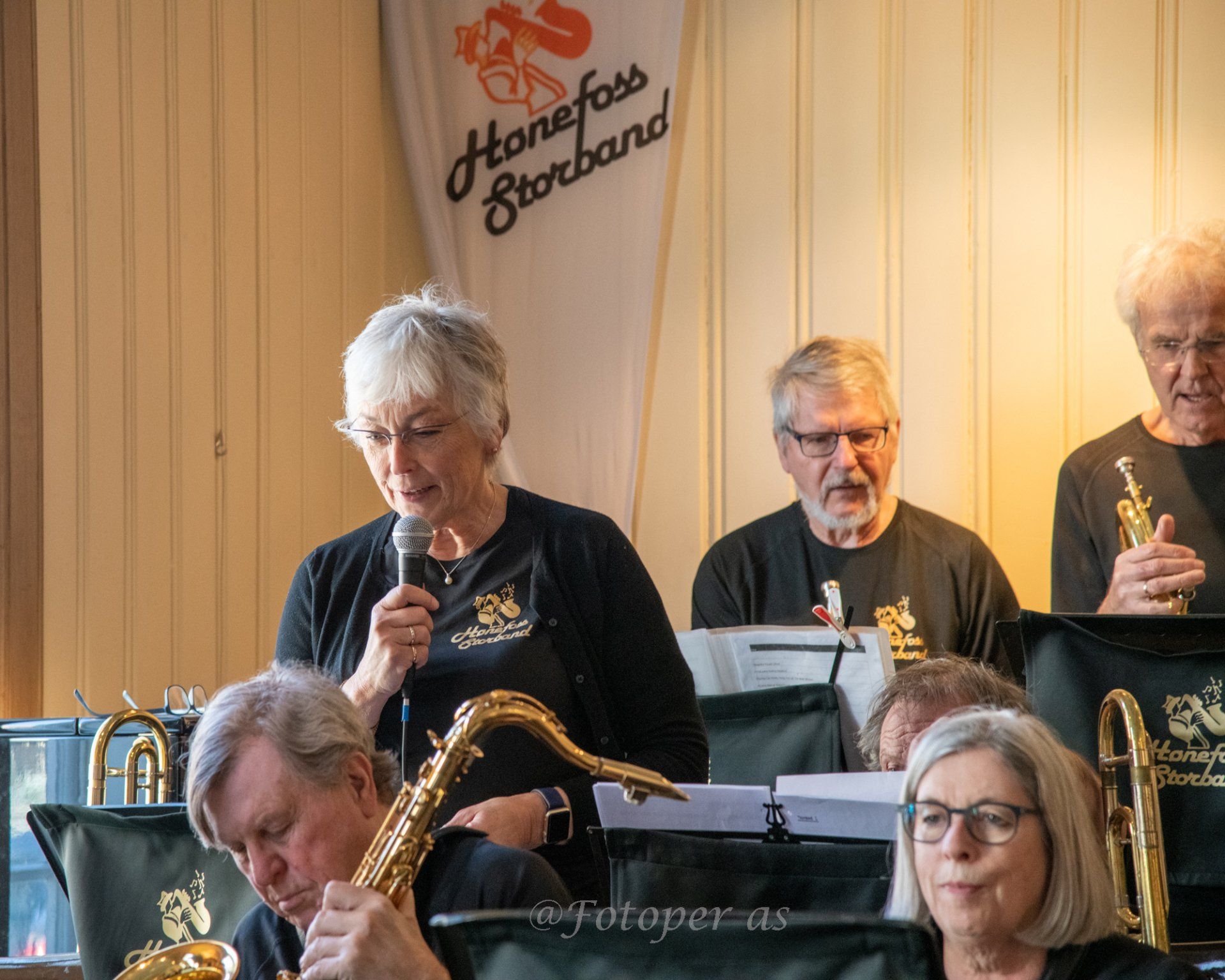 Lørdagsjazz med Hønefoss Storband i Fengselet har stått på savnetlista lenge, men lørdag ble de endelig "funnet igjen". Konserten har vært et savn for flere enn meg, det var ingen ledige plasser og publikum koste seg med godlyder. Den alltid morsomme og kunnskapsrike konferansieren og trombonisten Eli Kihle Hansen knyttet som vanlig det hele flott sammen. Blant stykkene som ble spilt var Jahn Teigens "En dags pause". -I et nydelig arrangement av vår spillende dirigent Fredrik Øie Jensen, sa Eli. -Å ja, vi får vente til vi har spilt ferdig, sa Fredrik med et smil.
