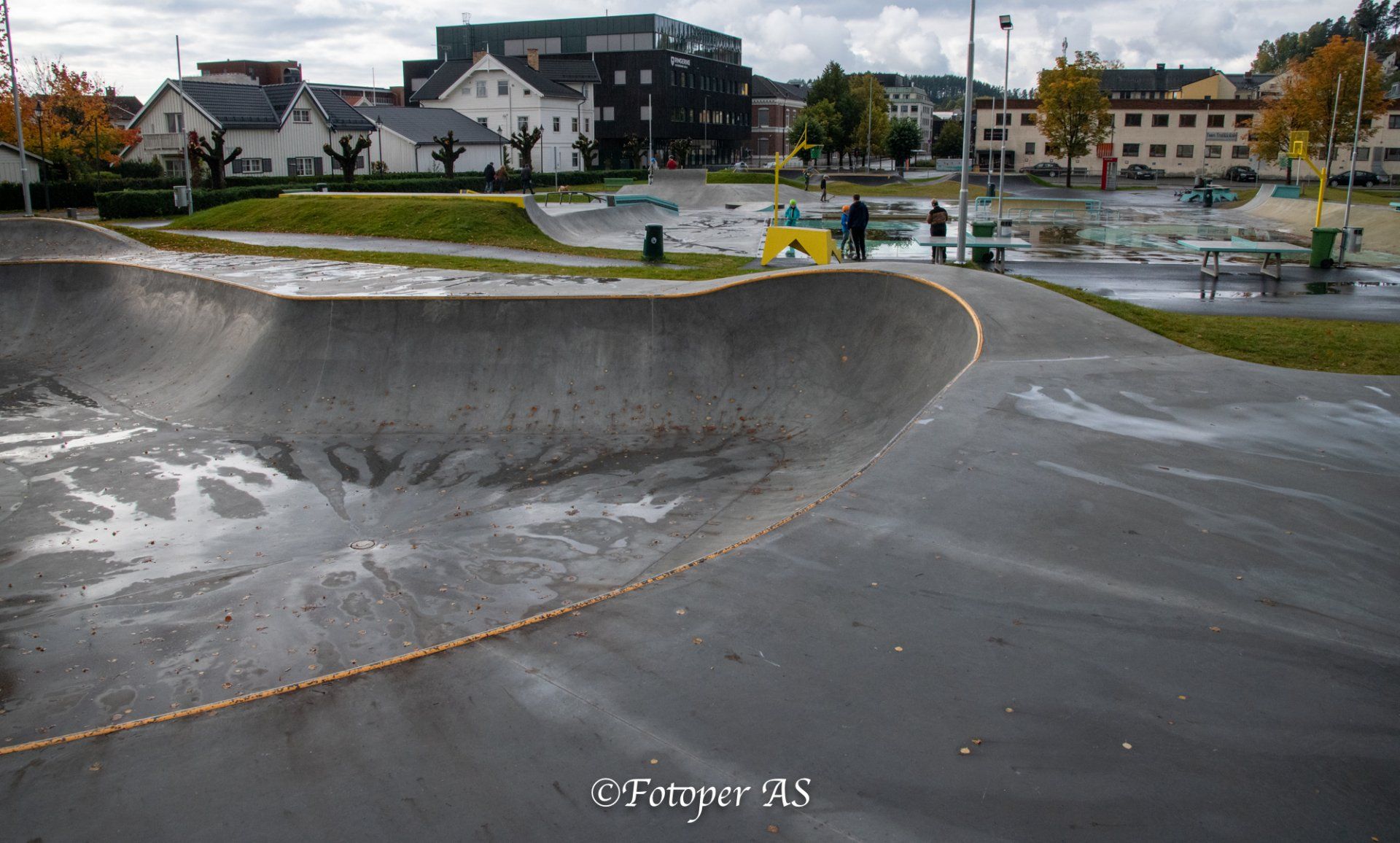 I skateparken er det bare noen få i aktivitet. Men det er nok ikke lenge før det er full fart der i dag også.