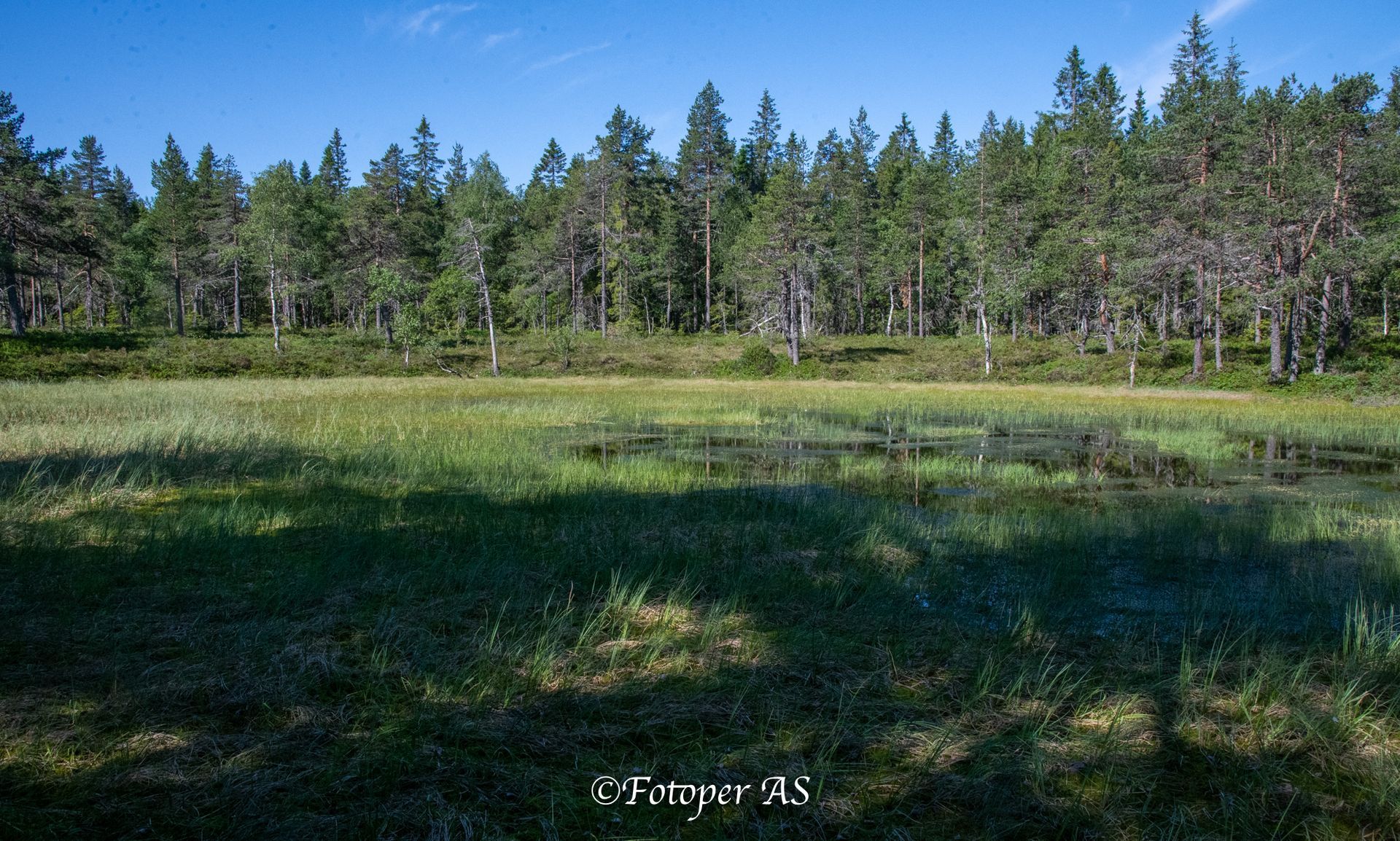 Og jeg går forbi et skikkelig mygghøl, litt myrvann som er et ypperlig tilholdsted for myggen.