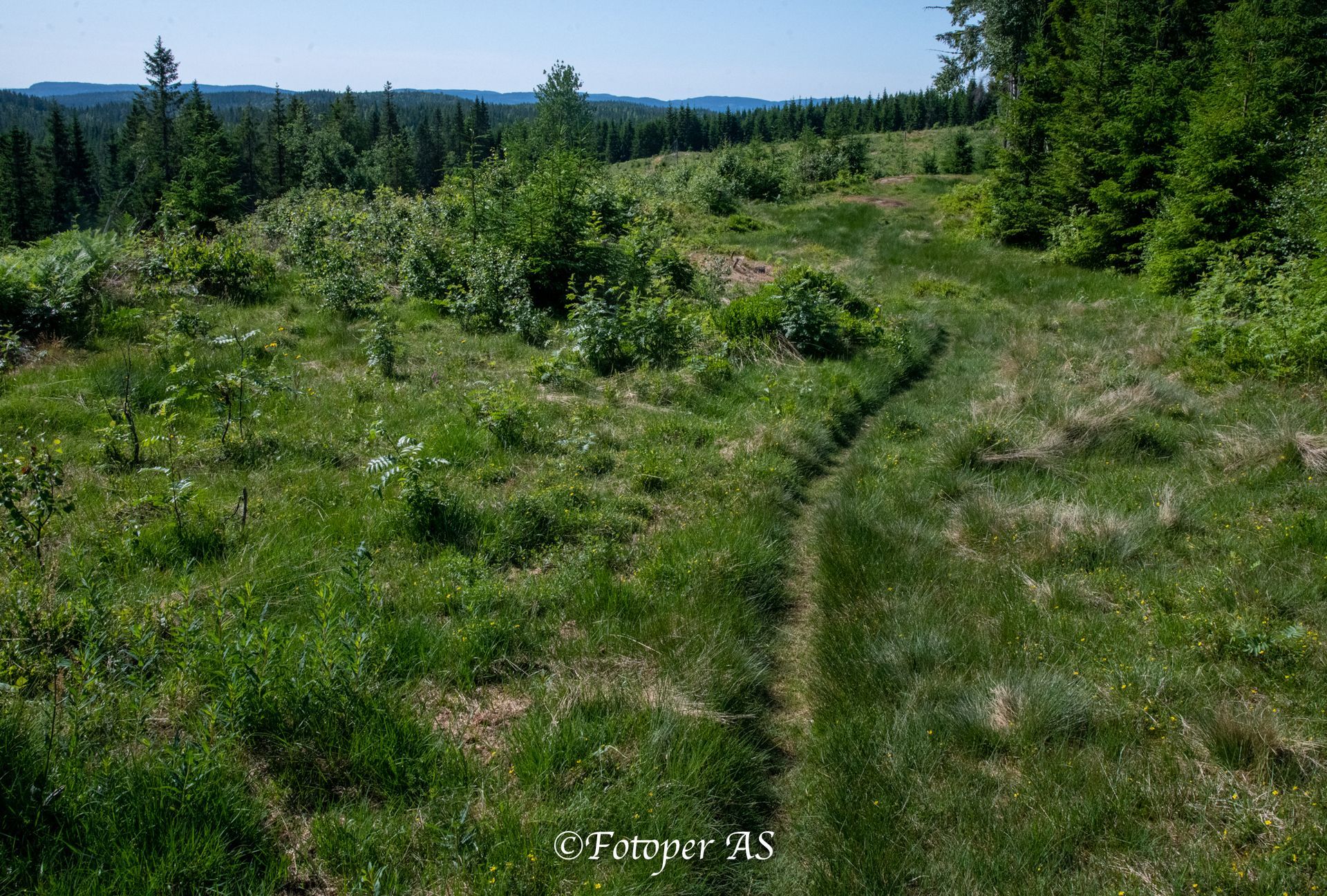 På stien videre mot Sørsetra stopper jeg ned i bakken og ser meg bakover. Minnes et vinterbilde jeg har fra samme sted.
