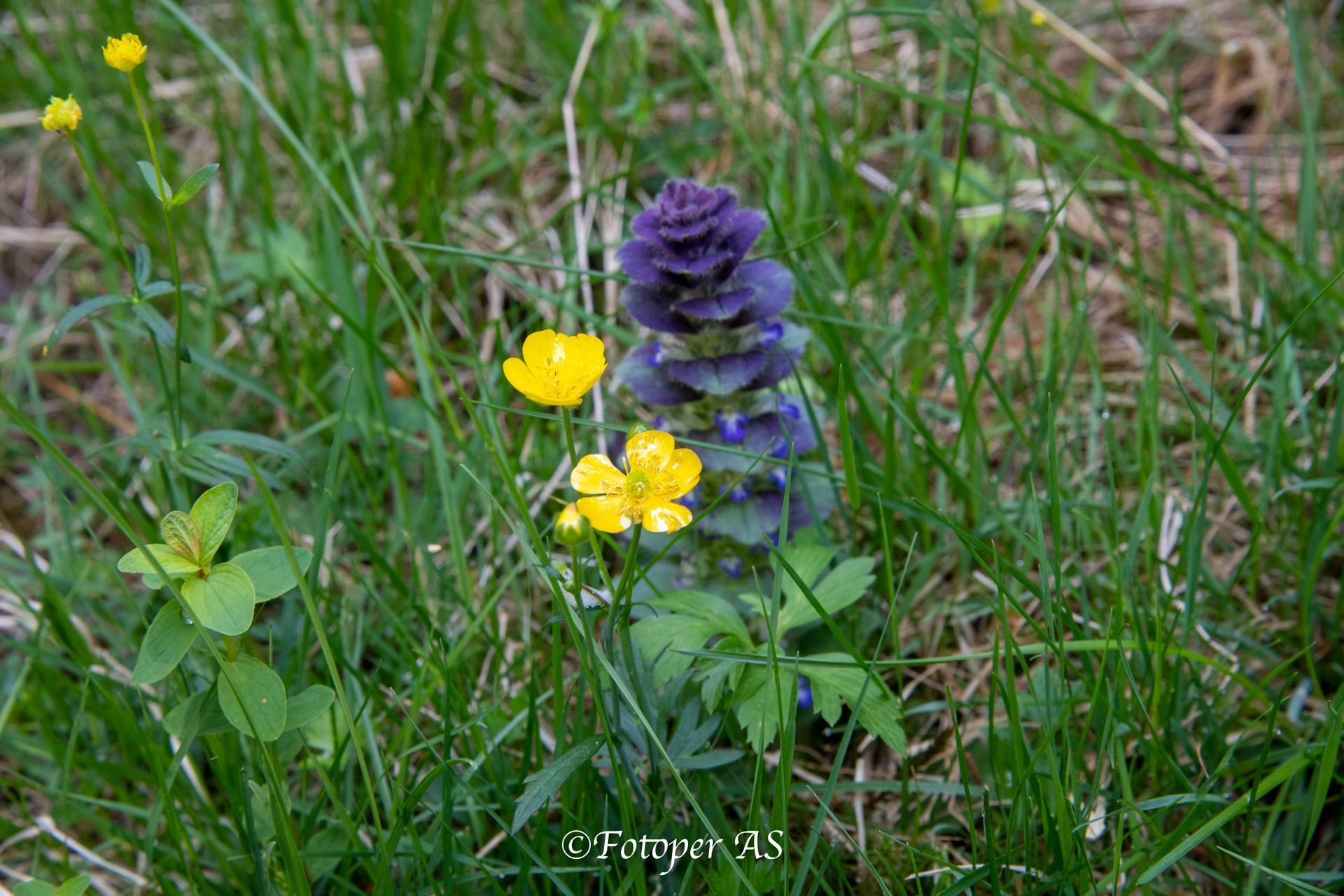 På Flinneflaksetra kan jeg nyte utsikten alene, ikke et menneske å se så langt på turen. Det er rikt med blomster her så jeg knipser i vei.